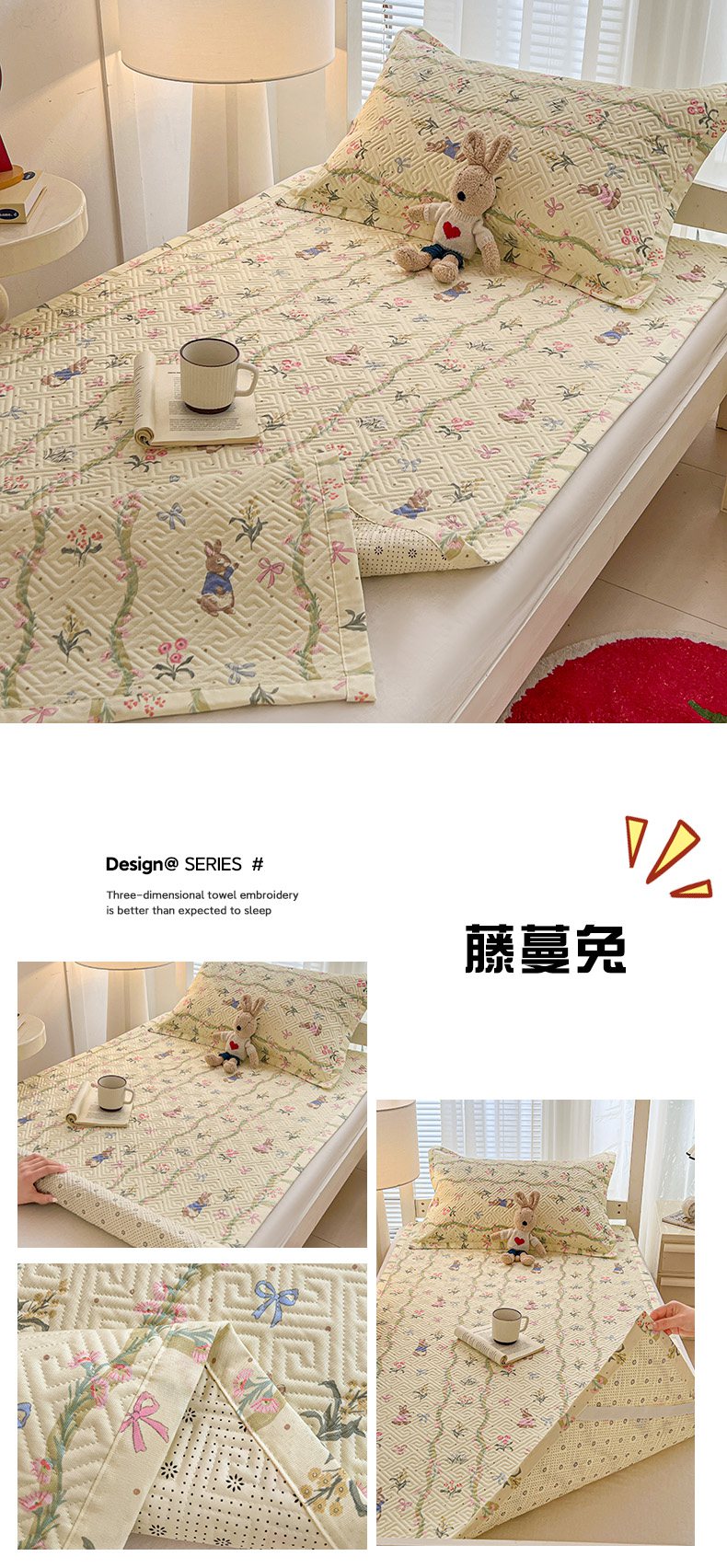(总)忆生活家纺 2026新款A类全棉老粗布软凉席夹棉床盖可机洗,彩色波点,豹纹,海草,花漾小兔,蓝格龙宝,麦浪织纹,藤蔓兔,条纹绿,小爱心,鸭鸭春游,叶语,枝繁叶茂,组合图