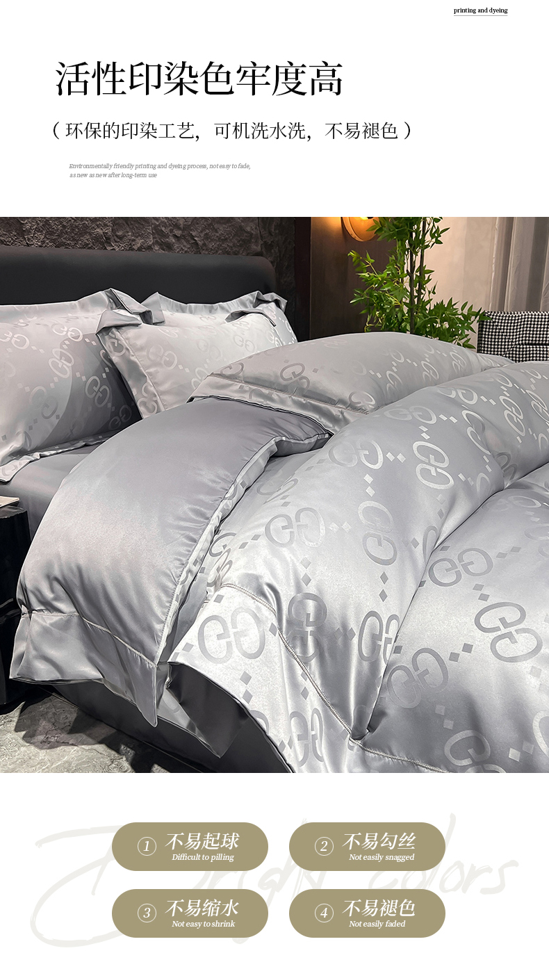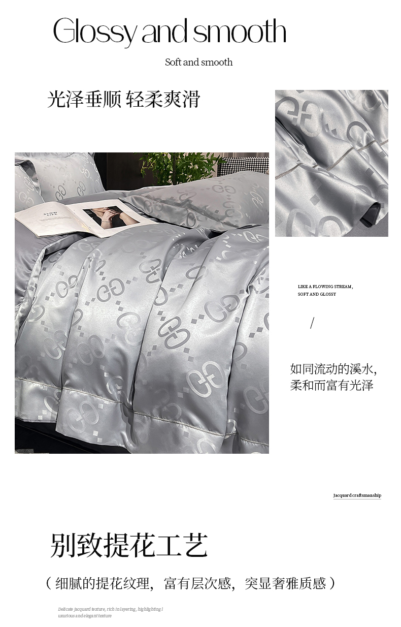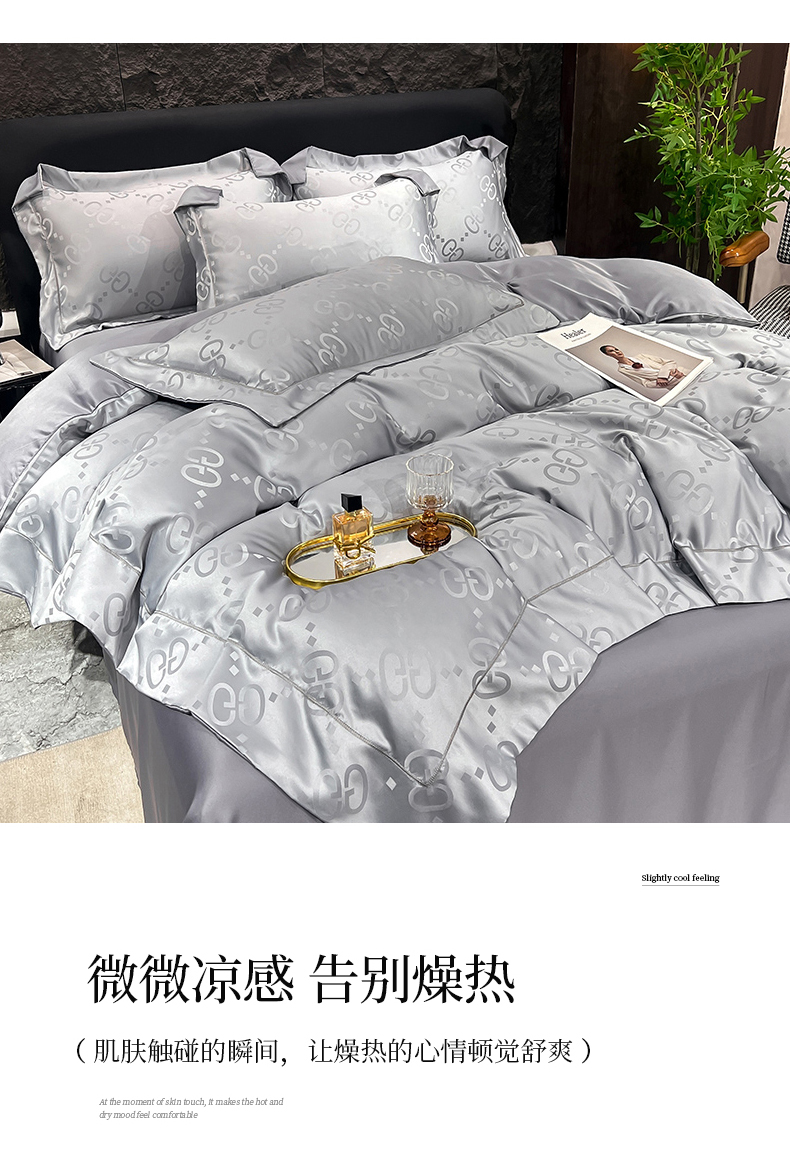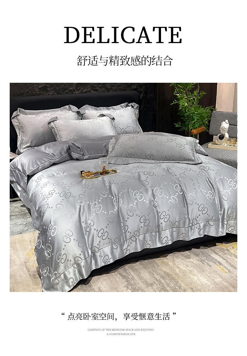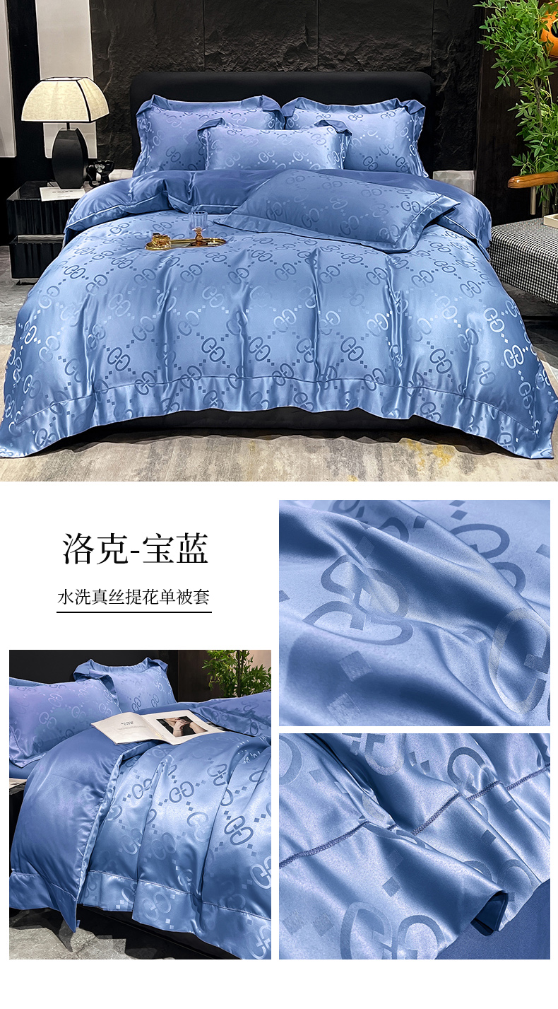(总) 新25 经年2025年 水洗真丝冰丝天丝提花四件套直播爆款 格林系列 ,格林-宝蓝,格林-粉玉,格林-浅灰,格林-天蓝,格林-香槟