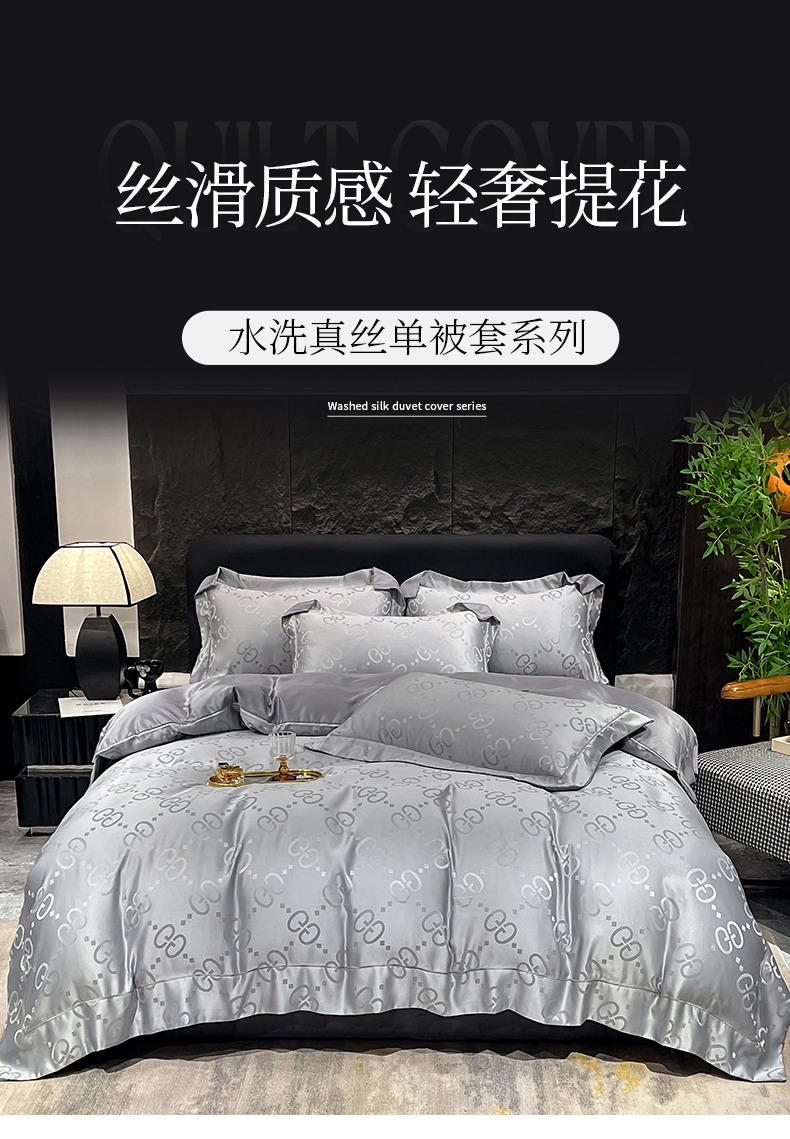 商品名称:经年 2026新款水洗真丝提花单被套被套单件 洛克-爵士灰
