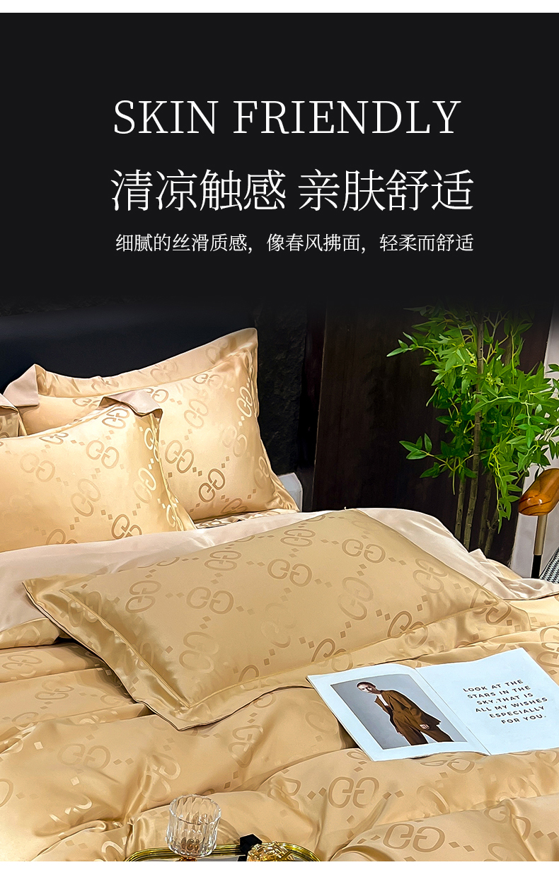 (总) 新25 经年2025年 水洗真丝冰丝天丝提花四件套直播爆款 格林系列 ,格林-宝蓝,格林-粉玉,格林-浅灰,格林-天蓝,格林-香槟