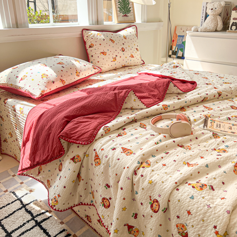(总)梵希雅 2026新款A类贝壳秀费尔岛风泡芙棉夏被空调被四件套,红棕萌犬-夏被,焦糖木马-夏被,甜粉摇马-夏被,雾蓝自由马-夏被,棕蓝麋鹿-夏被