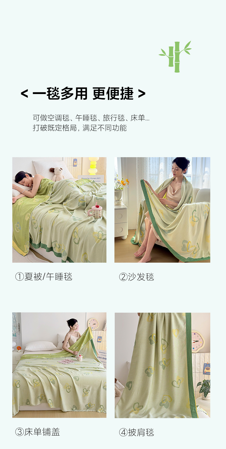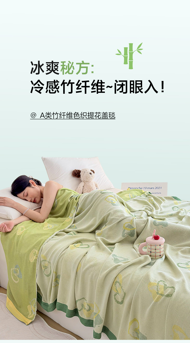 商品名称:棠薇家纺 2026新款竹纤维毯子冷感毯毛巾被柔滑多功能夏凉毯盖毯纱发毯办公室午休毯 心愿