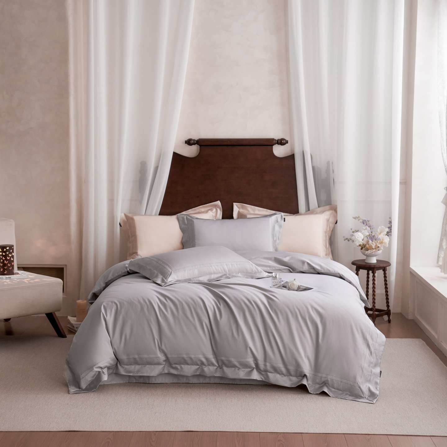 (总)安莱生活 2026新款天丝棉滚边款刺绣织序系列四件套,织序-白咖,织序-白巧,织序-摩卡,织序-银灰