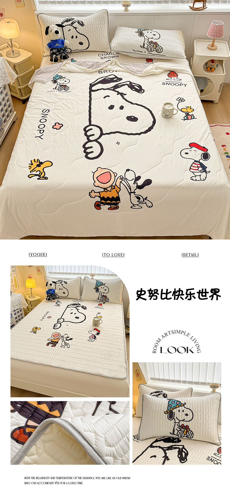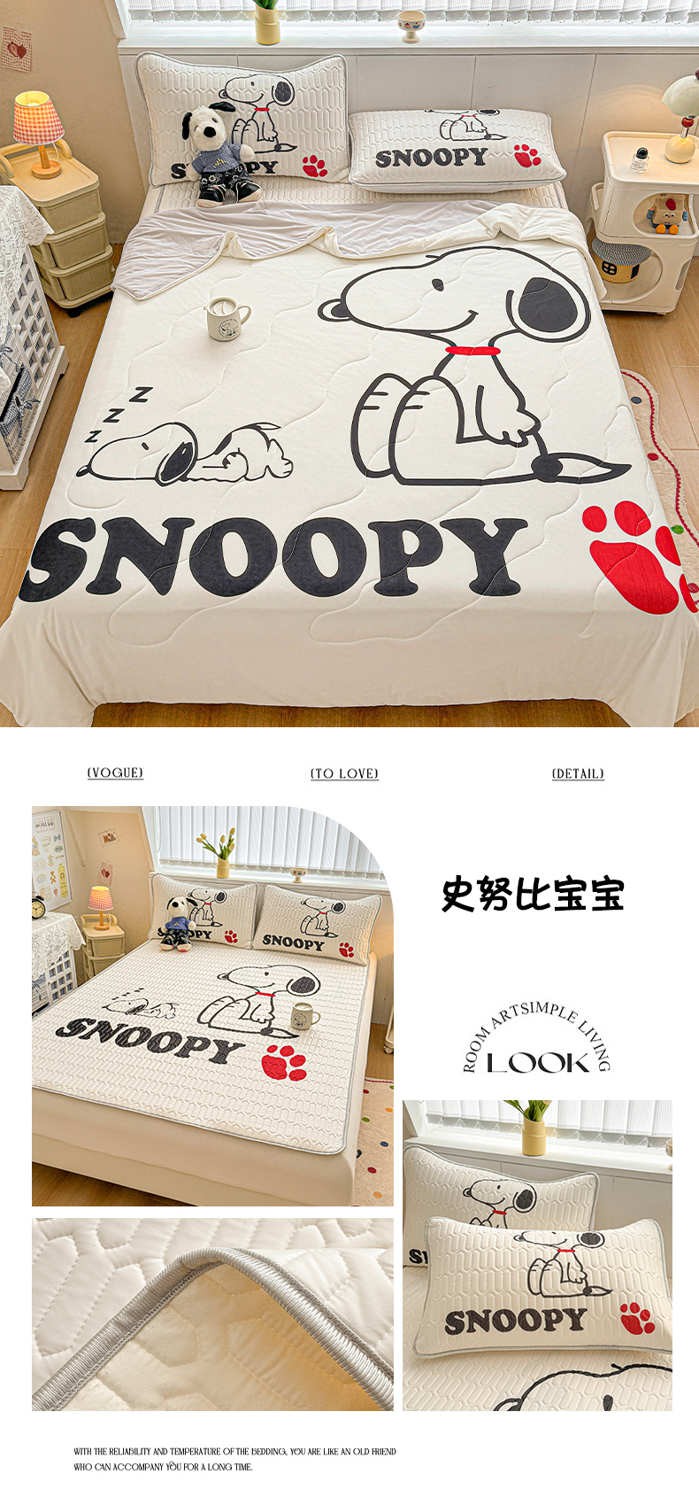 • 91家纺网 家纺一手货源 找家纺 梓之赫 2026新款史努比凉感丝乳胶凉席席子夏被夏凉被空调被 史努比公主妆