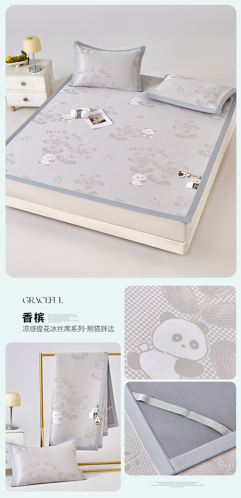 商品名称:小牛席业 2026新款胖达凉感提花冰丝席席子凉席 灰色