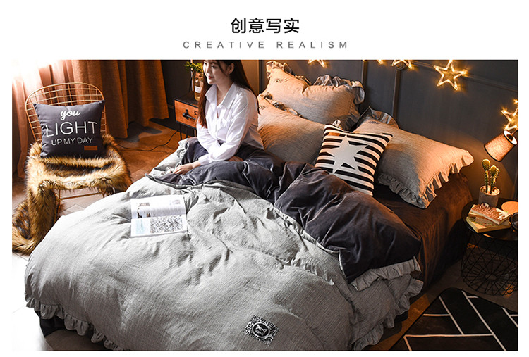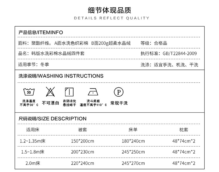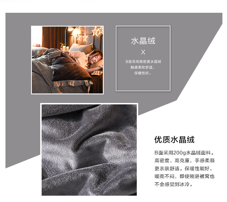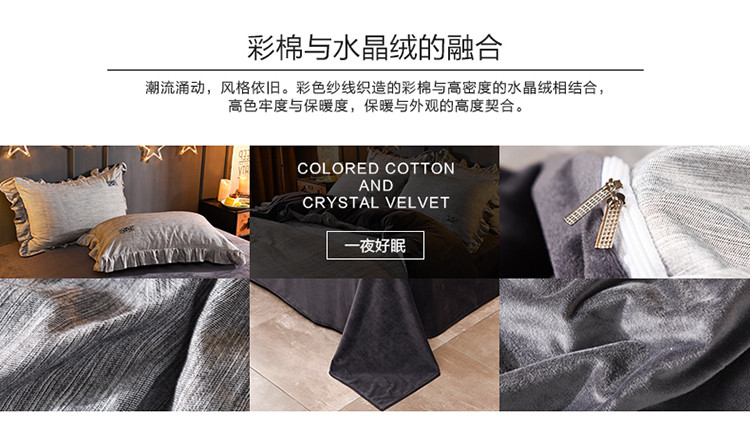 商品名称:芃成家纺 韩版水洗彩棉水晶绒 浅墨