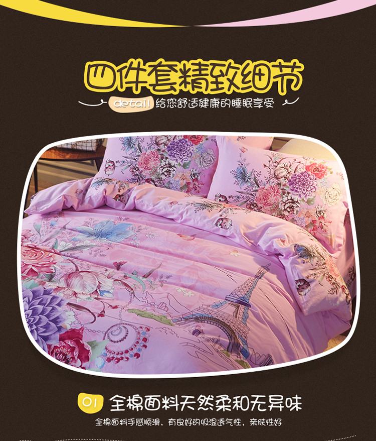 商品名称:芃成家纺 2017平网全棉四件套 巴黎之恋