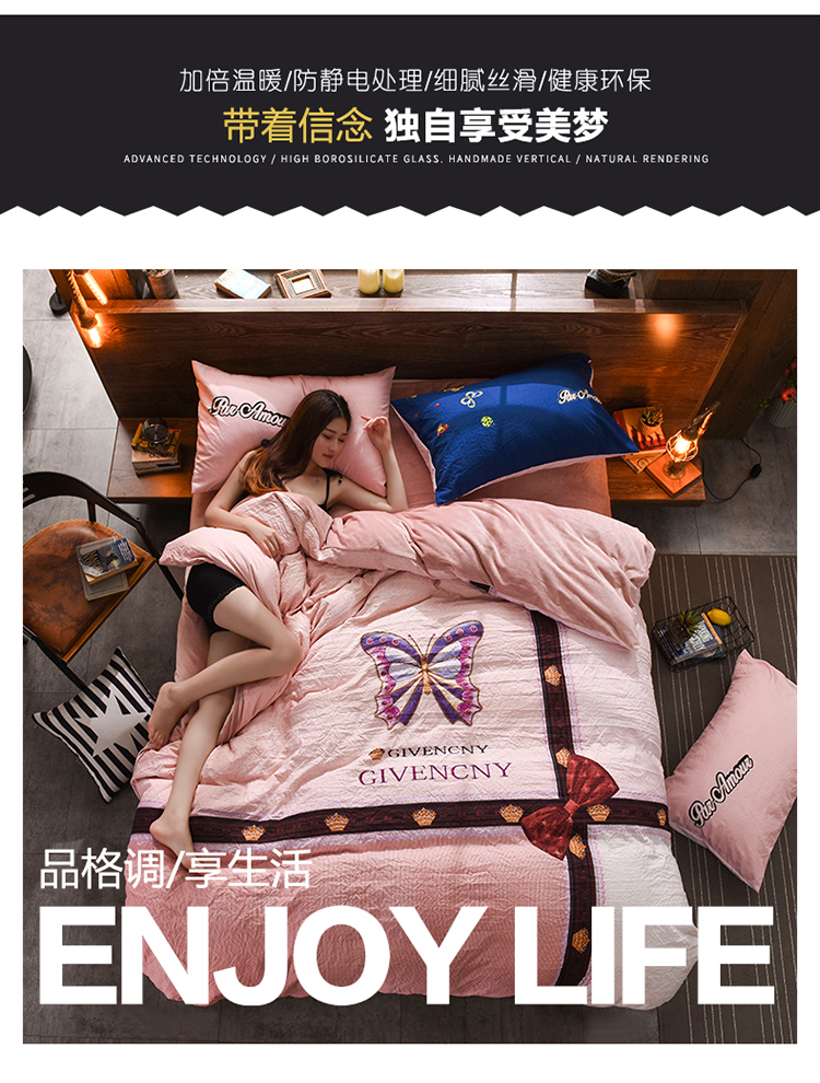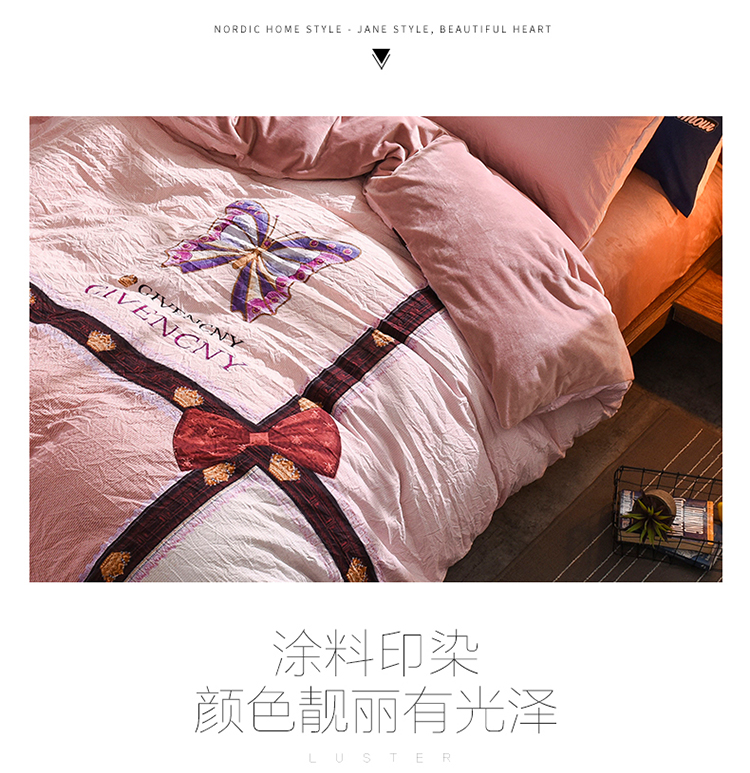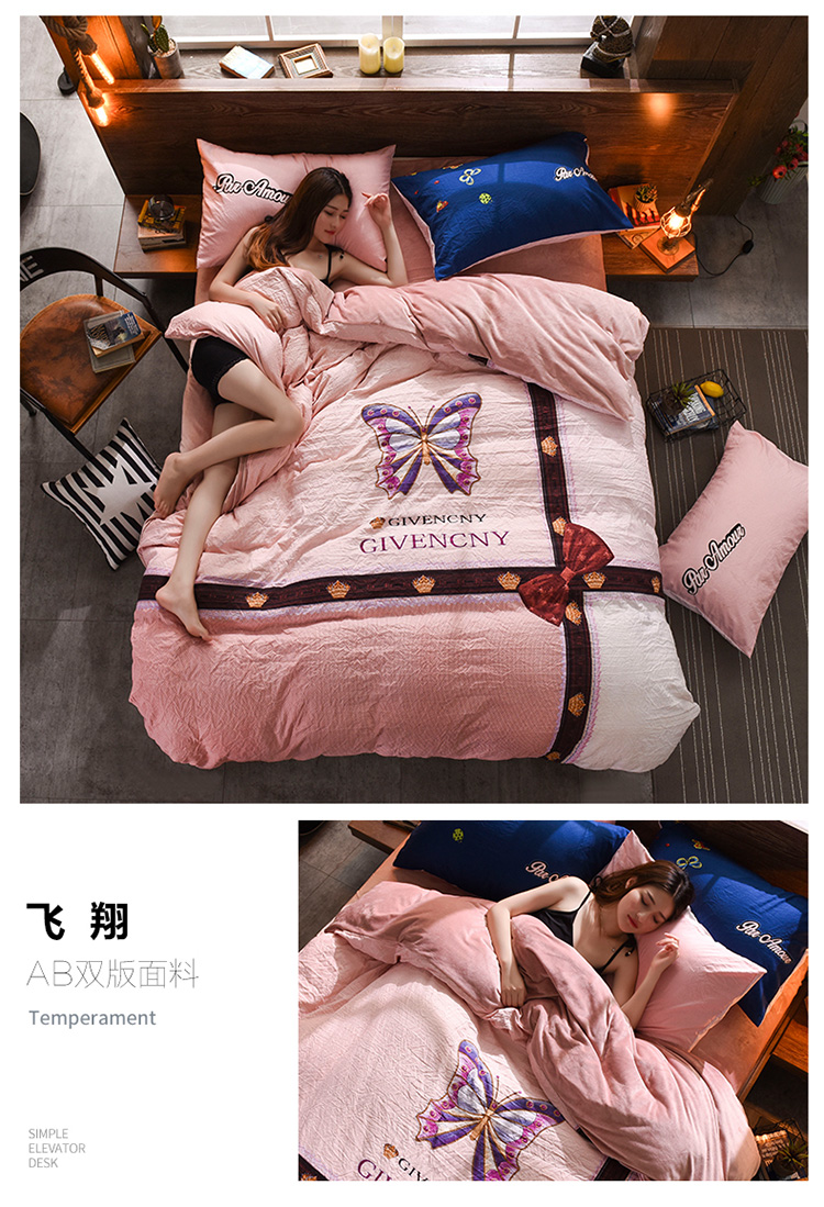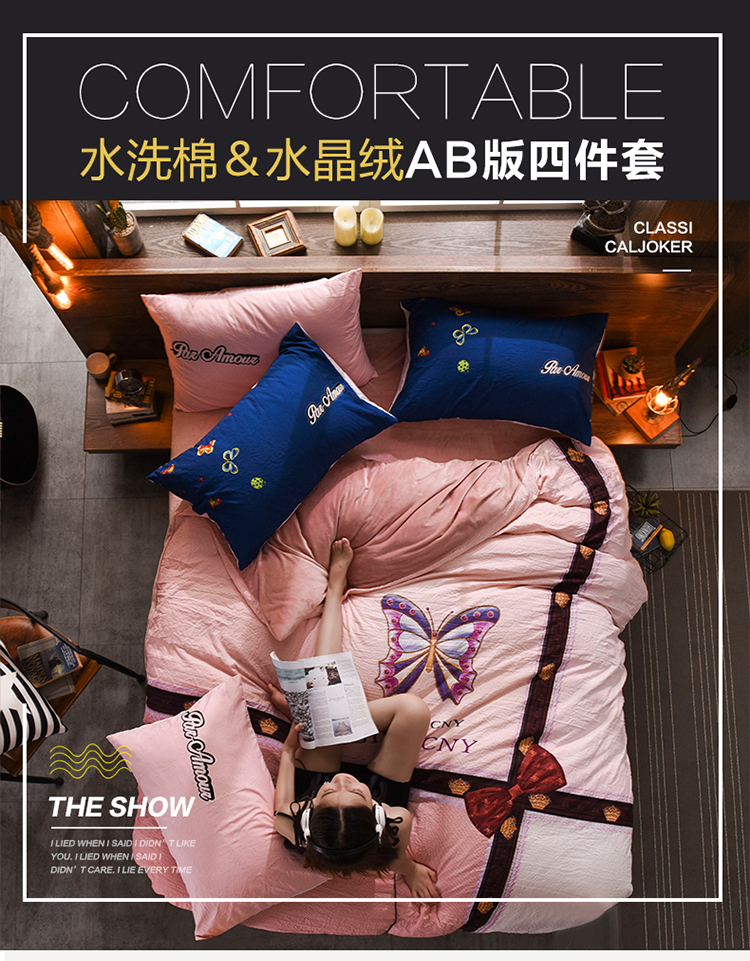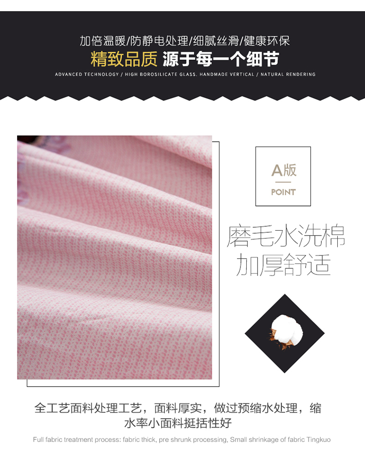 芃成家纺 磨毛水洗棉平网印花拼水晶绒四件套飞翔