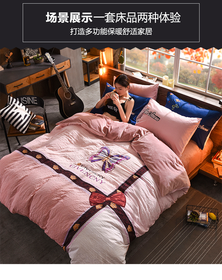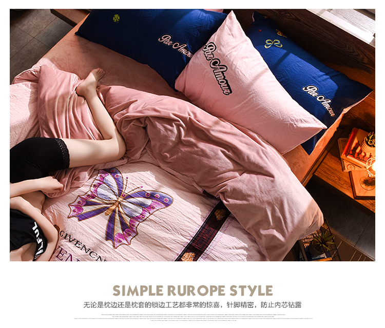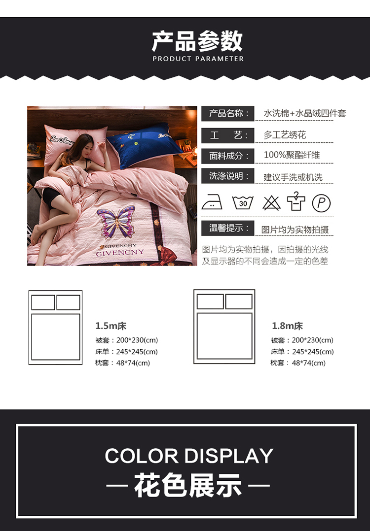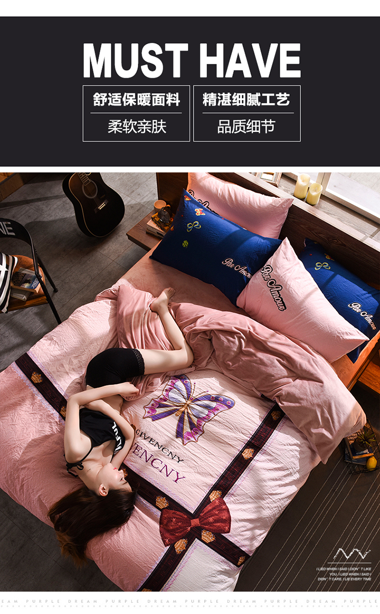 芃成家纺 磨毛水洗棉平网印花拼水晶绒四件套飞翔