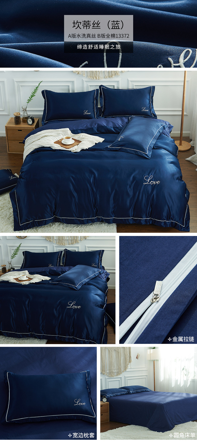 (总)意尚风情 2022新款莫代尔天丝水洗真丝绣花夏被四件套,宾利蓝,纯白,粉玉,高级灰,墨绿,深蓝,水绿,香槟