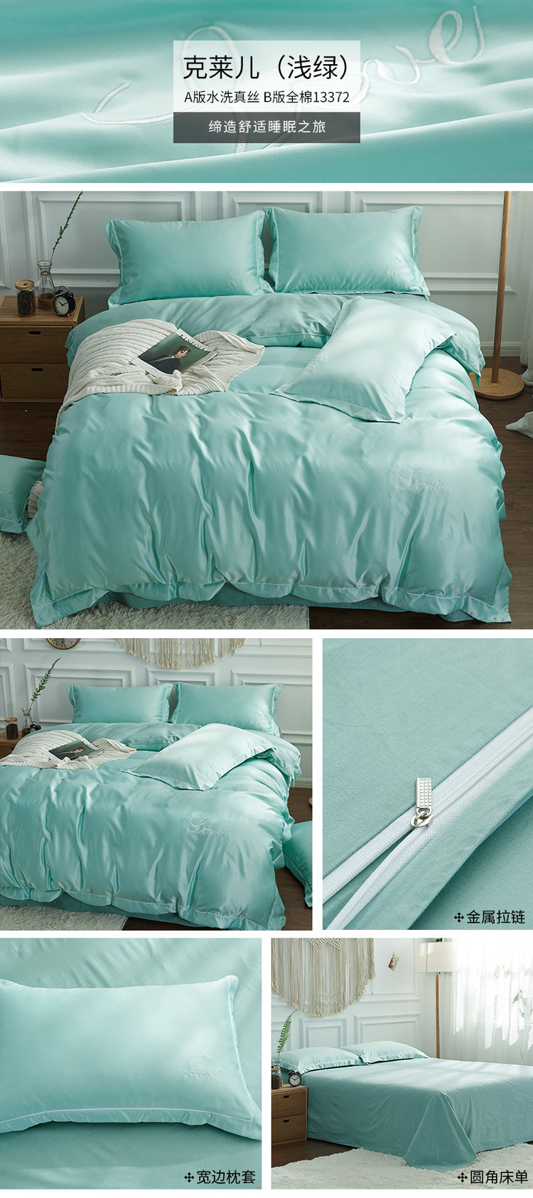 (总)意尚风情 2023新款天丝提花蕾丝刺绣四件套,薄荷绿,宾利兰,豆沙,高级灰,格调灰,姜黄,墨绿,少女粉,香芋紫,雅绿