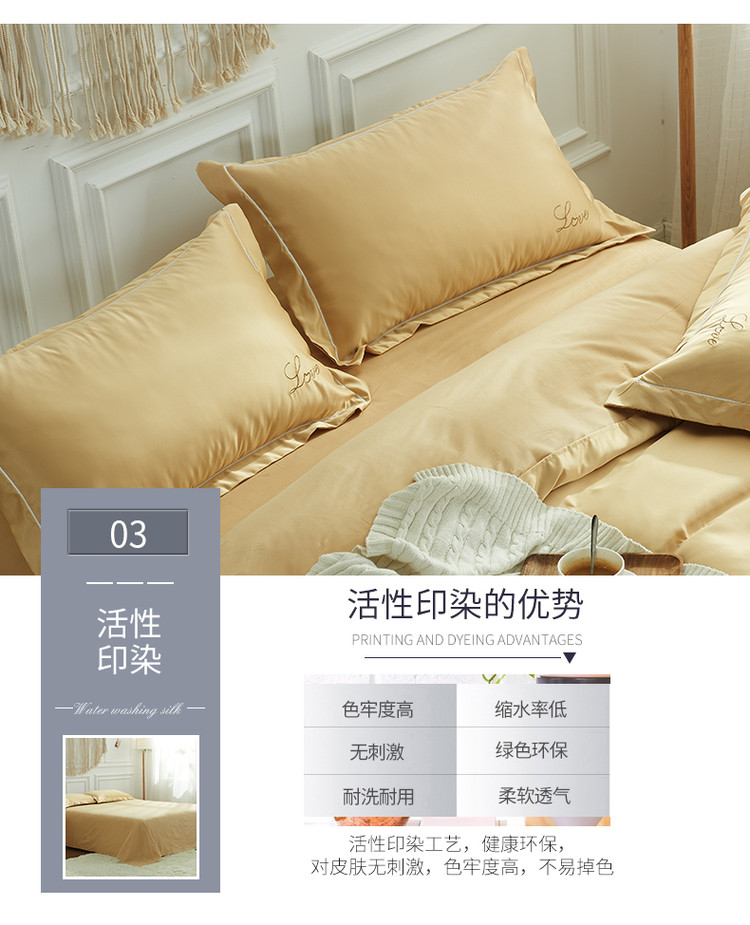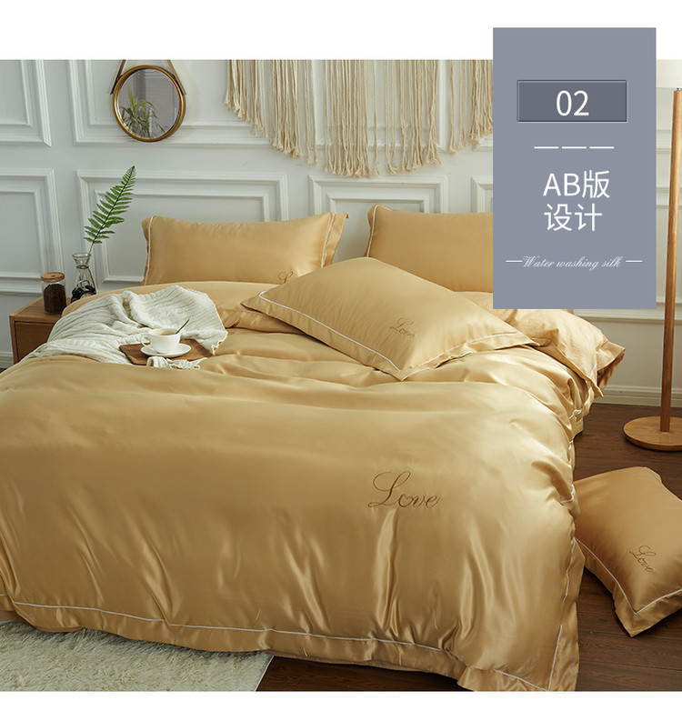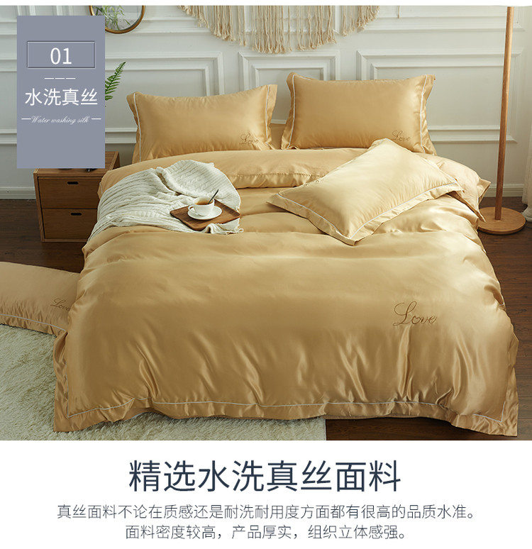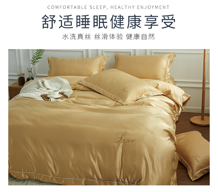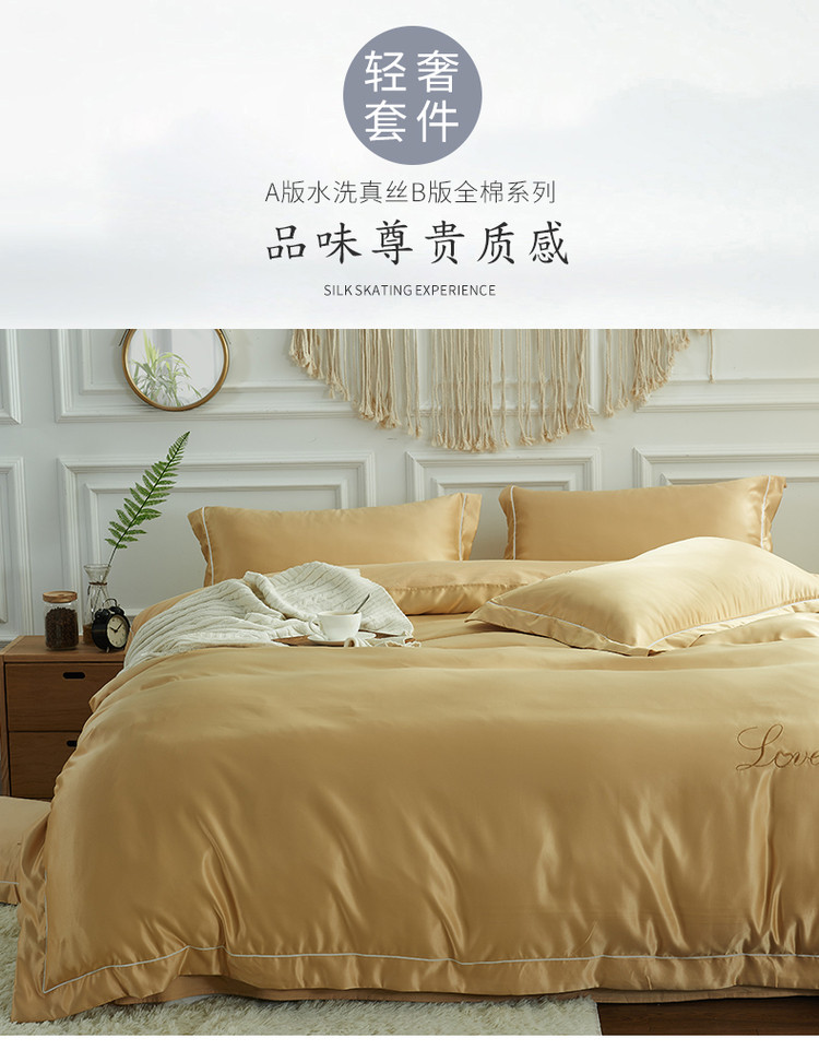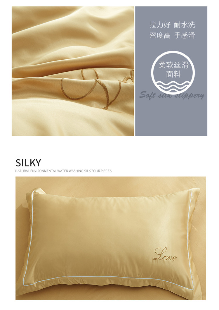 意尚风情 2020新款·绣花水洗真丝四件套床单款索尼娅(黄)