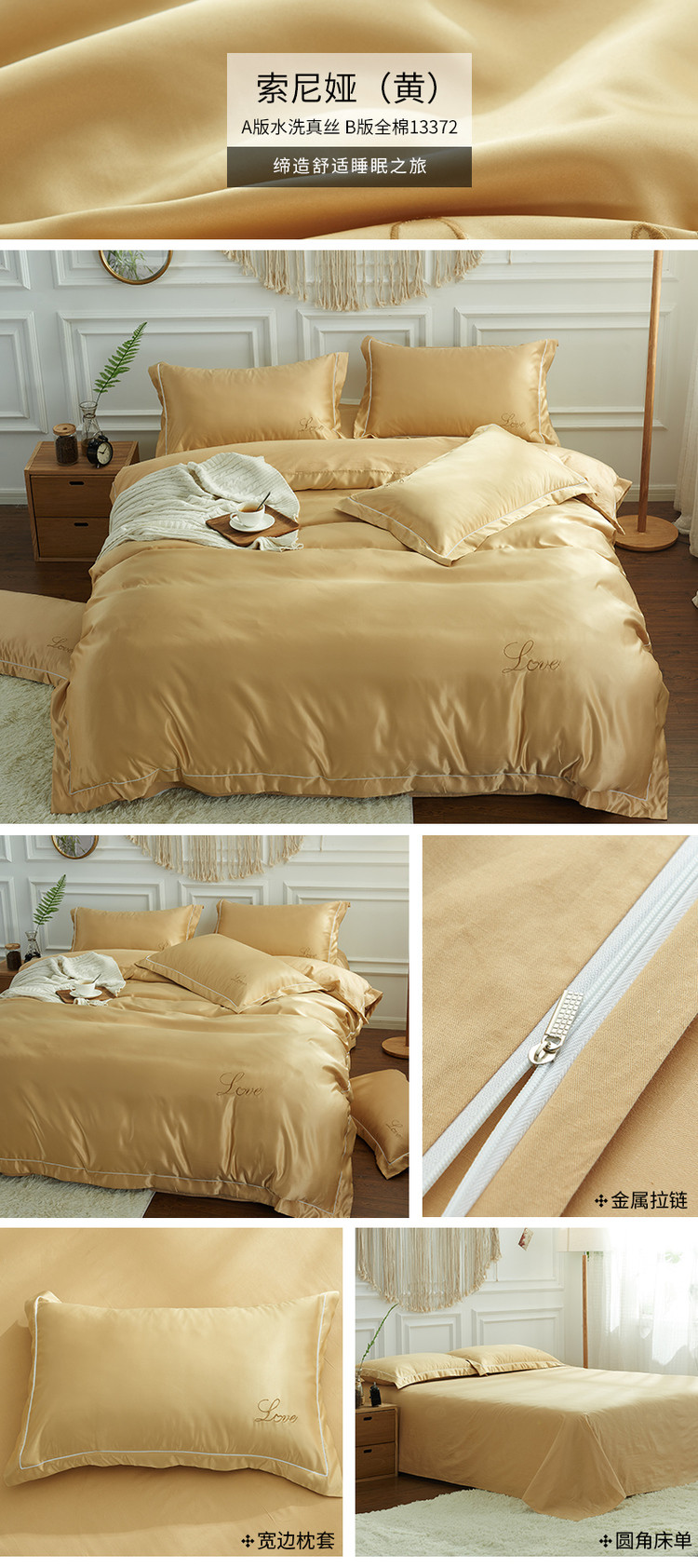 商品名称:意尚风情 2020新款·绣花水洗真丝四件套床单款索尼娅(黄)