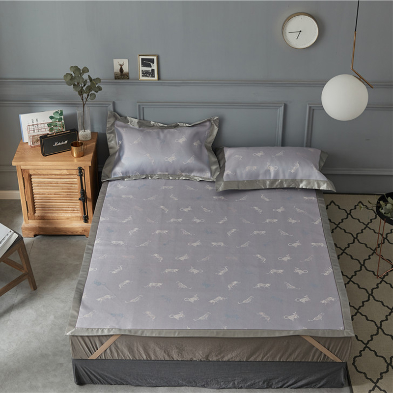 时年家纺 2018新款冰露丝养生席提花欧式系列 豹子-蓝紫
