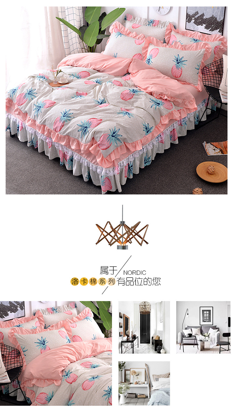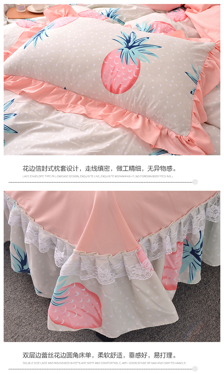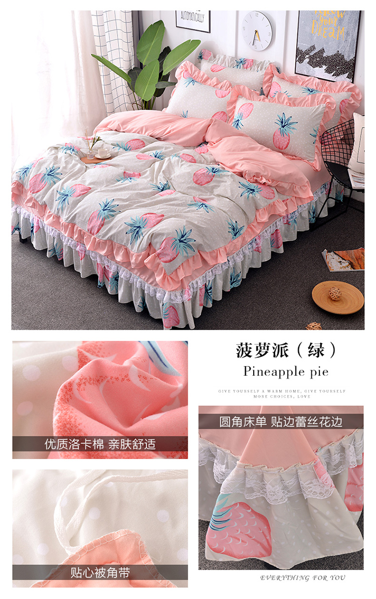 商品名称:梦柏 2018新款洛卡棉蕾丝花边四件套 菠萝派(绿)