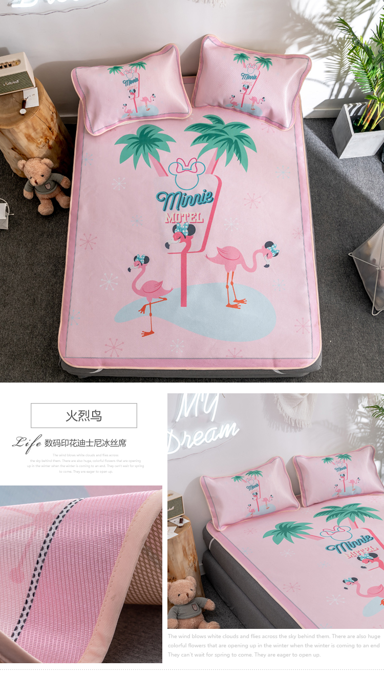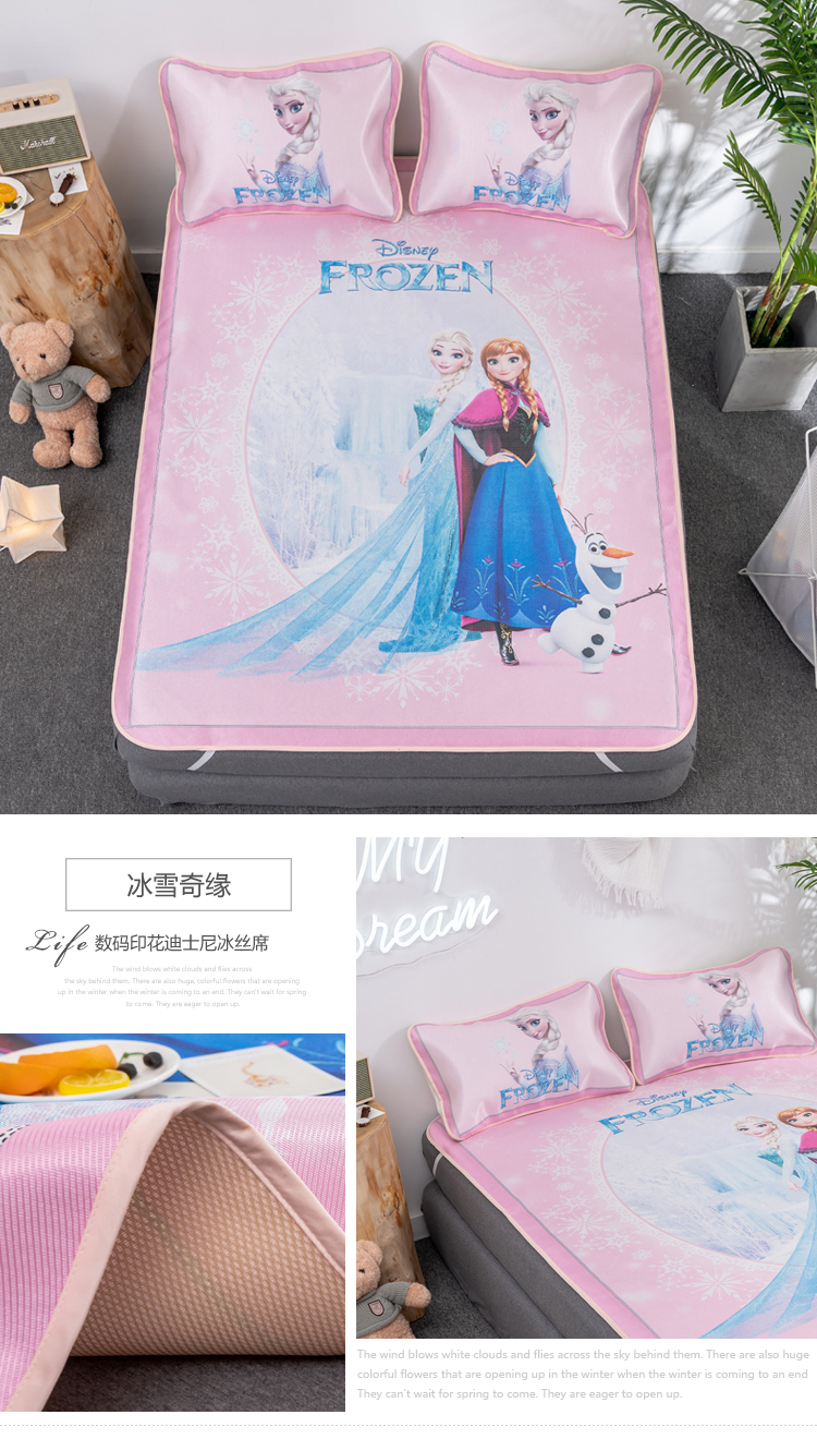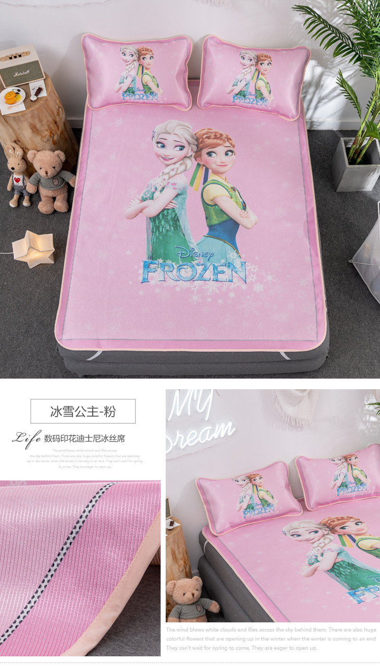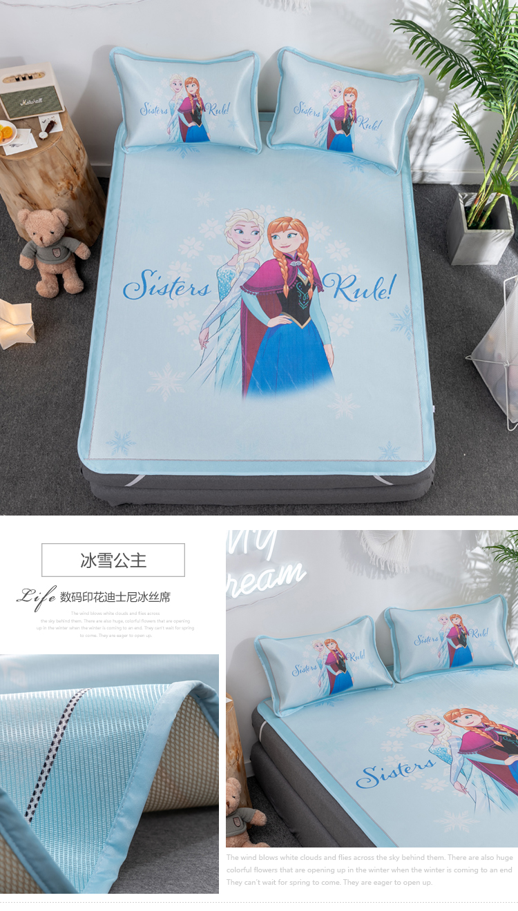 (总)正版授权迪士尼数码印花冰丝席三件套学生单人大板卡通凉席