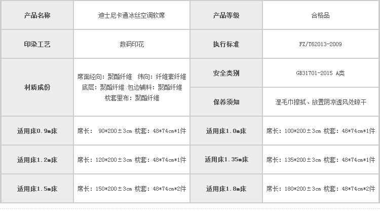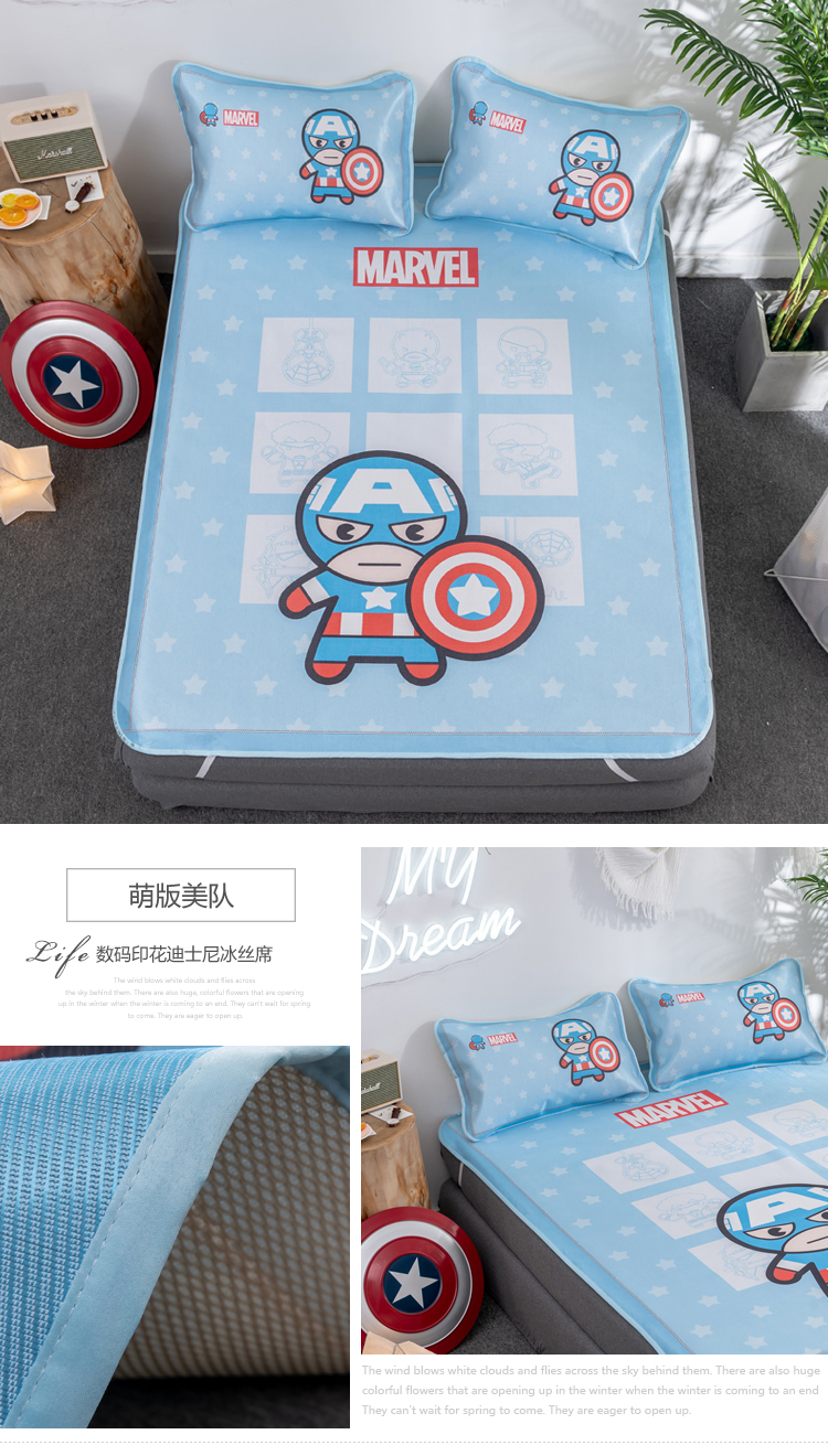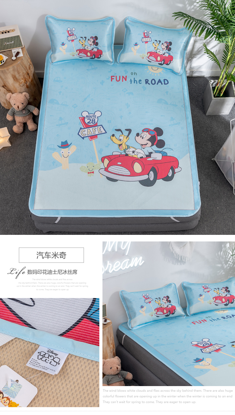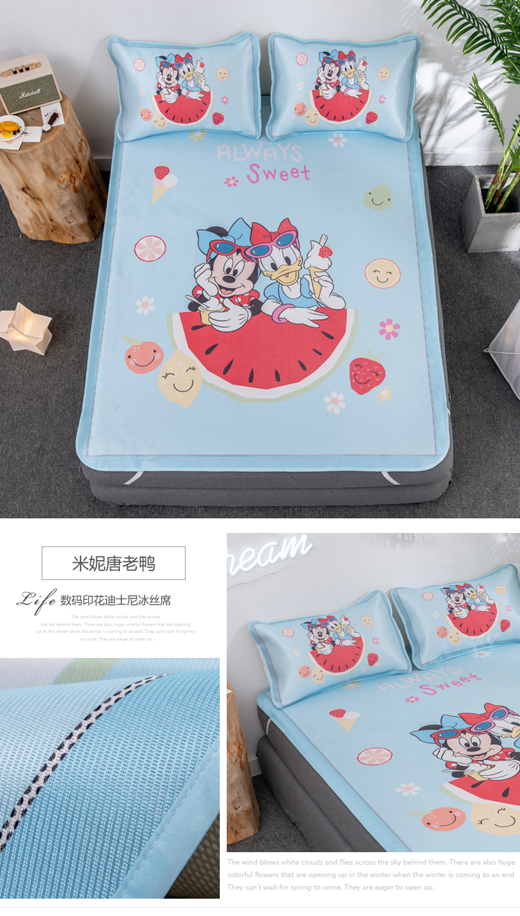 商品名称:(总)正版授权迪士尼数码印花冰丝席三件套学生单人大板卡通凉席