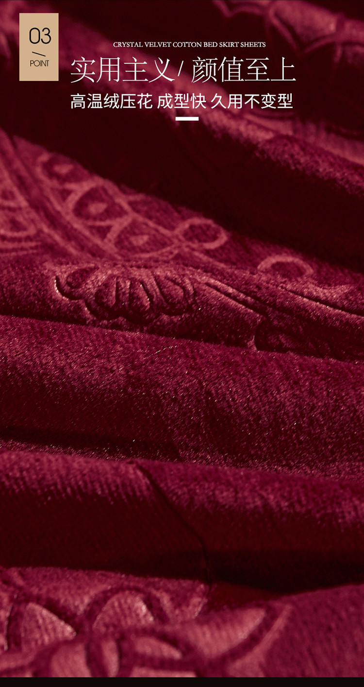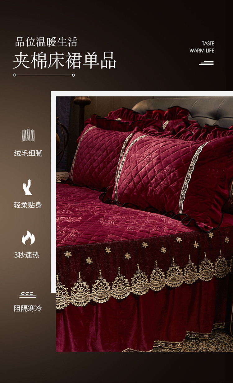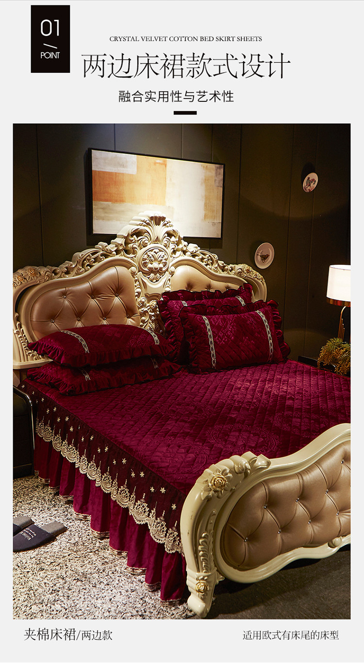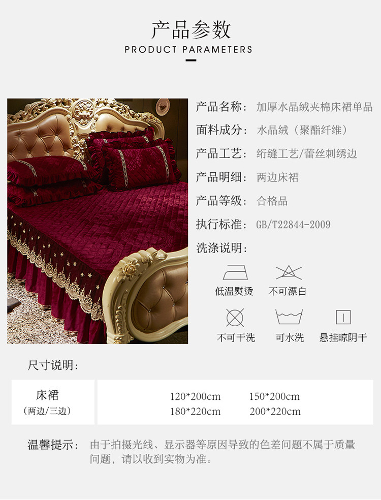商品名称:宜凡家纺 2019新款水晶绒夹棉床裙两边 花之都-酒红