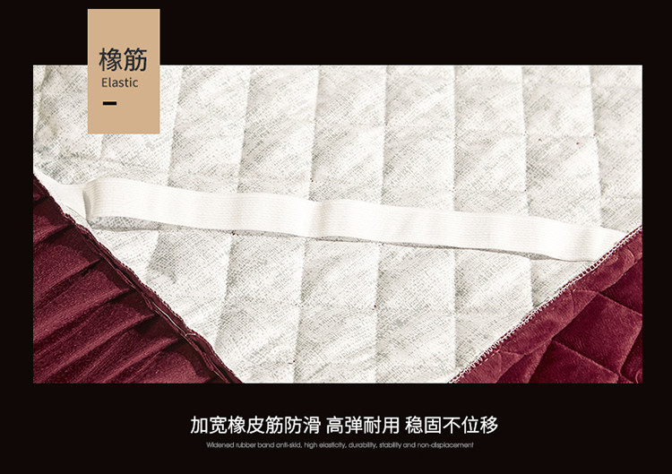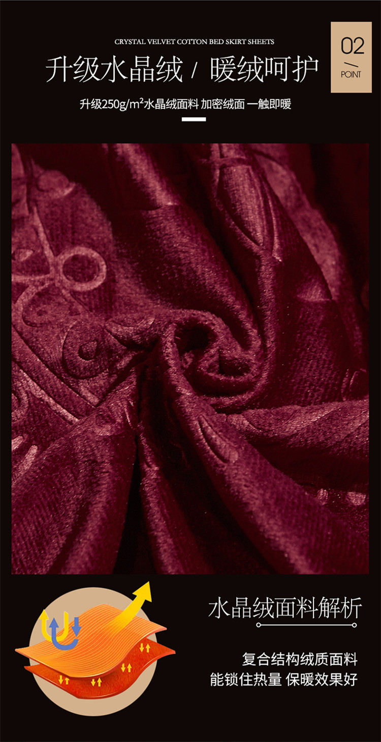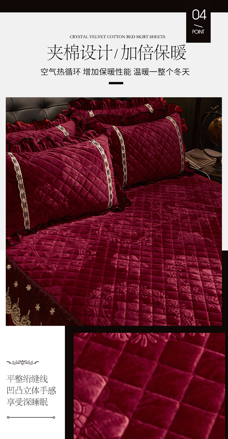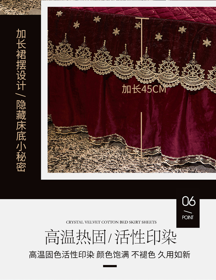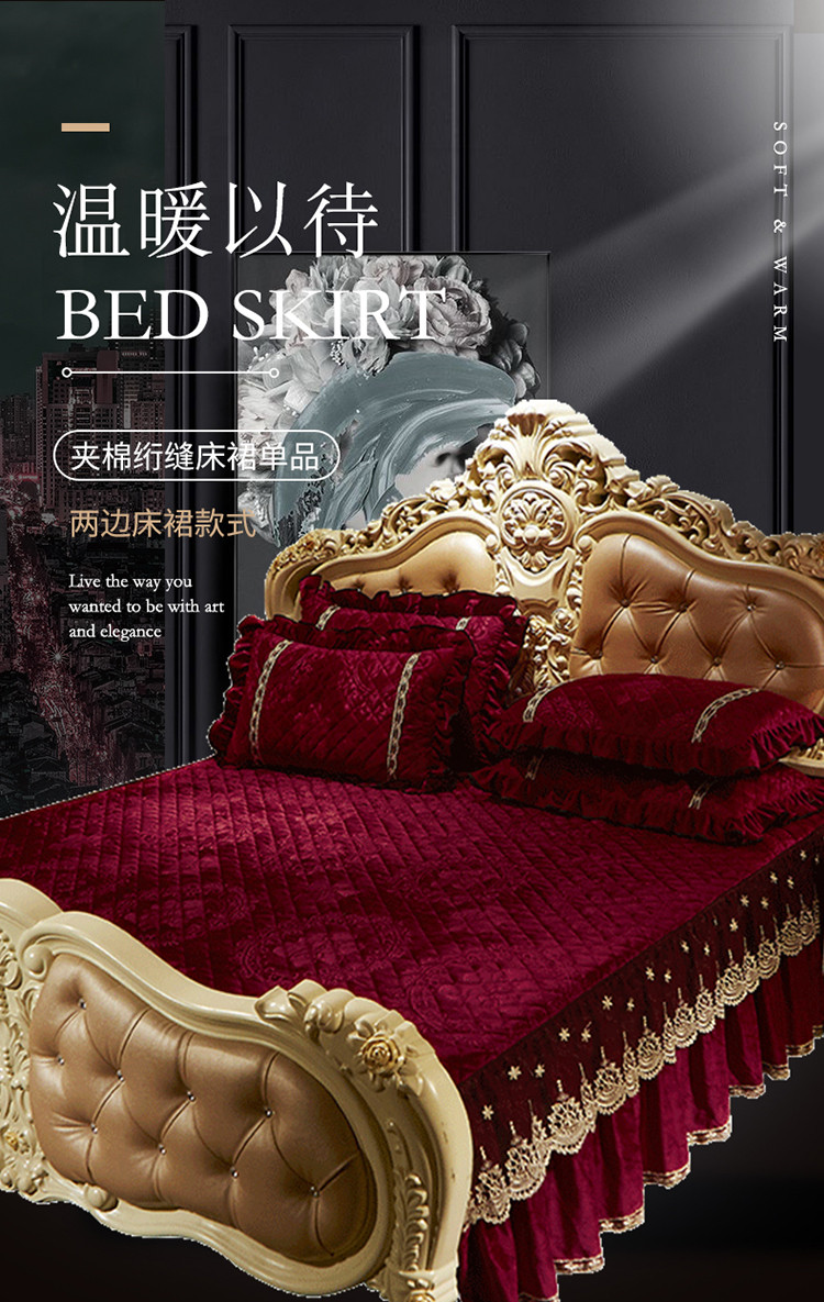 商品名称:宜凡家纺 2019新款水晶绒夹棉床裙两边 花之都-酒红