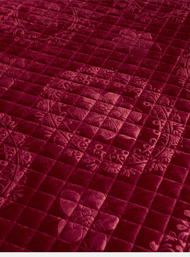 (总)宜凡家纺 2025新款婴儿绒压花全夹棉床盖四件套,韵雅-中国红,韵雅-黑天鹅