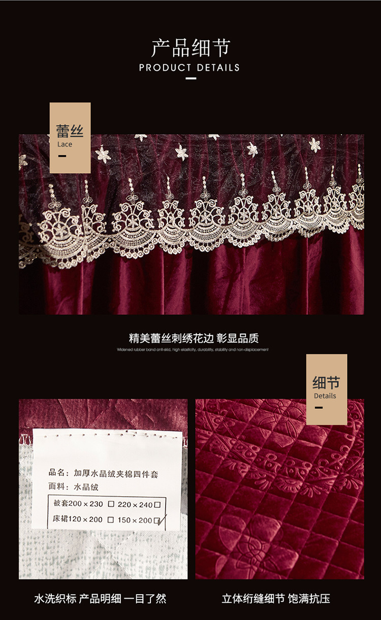 (总)宜凡家纺 2025新款婴儿绒压花全夹棉床裙四件套,韵雅-中国红,韵雅-黑天鹅