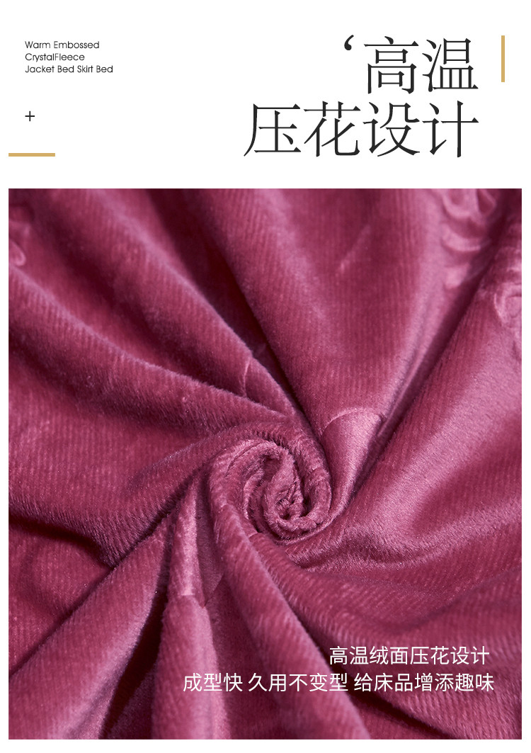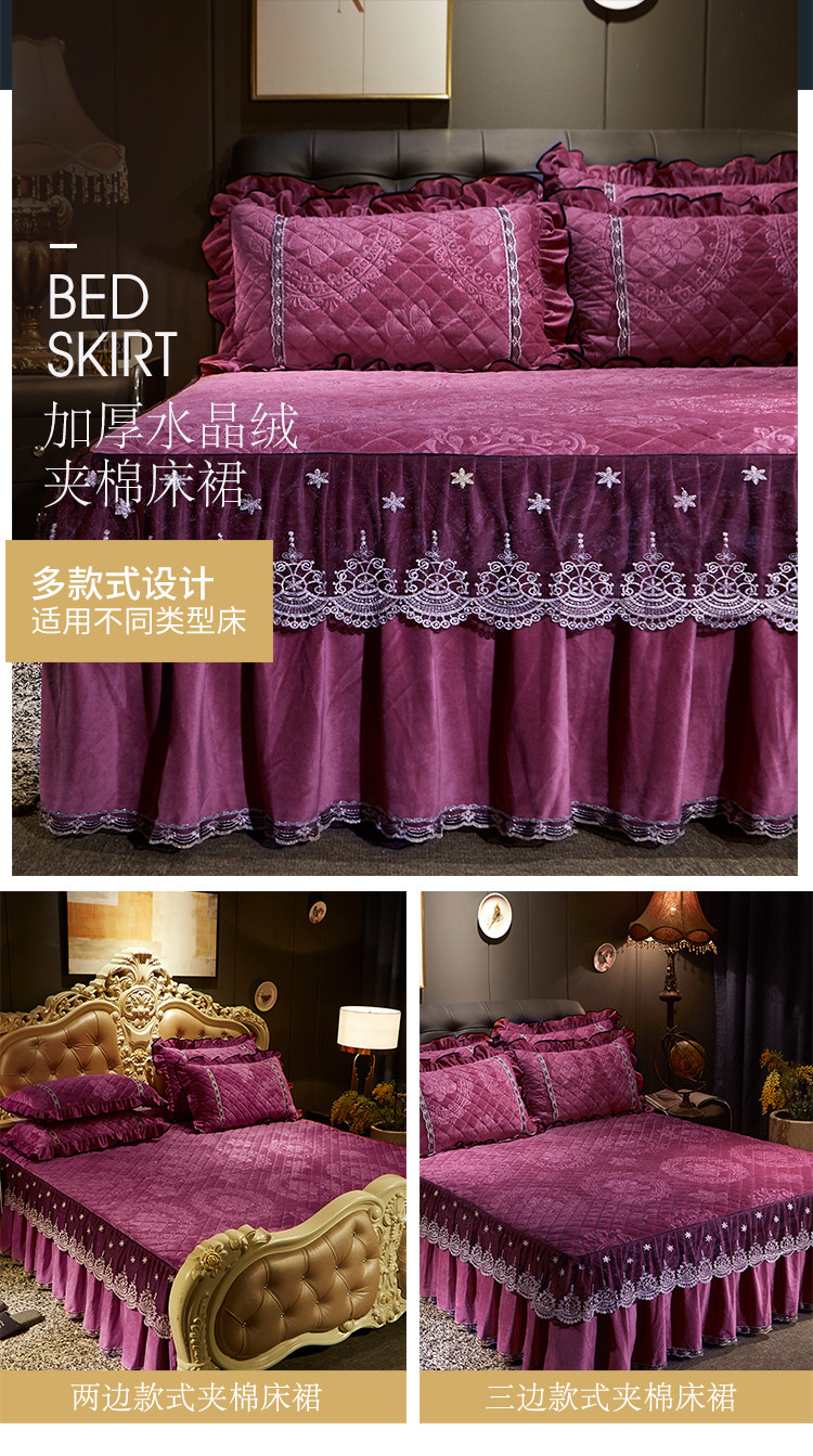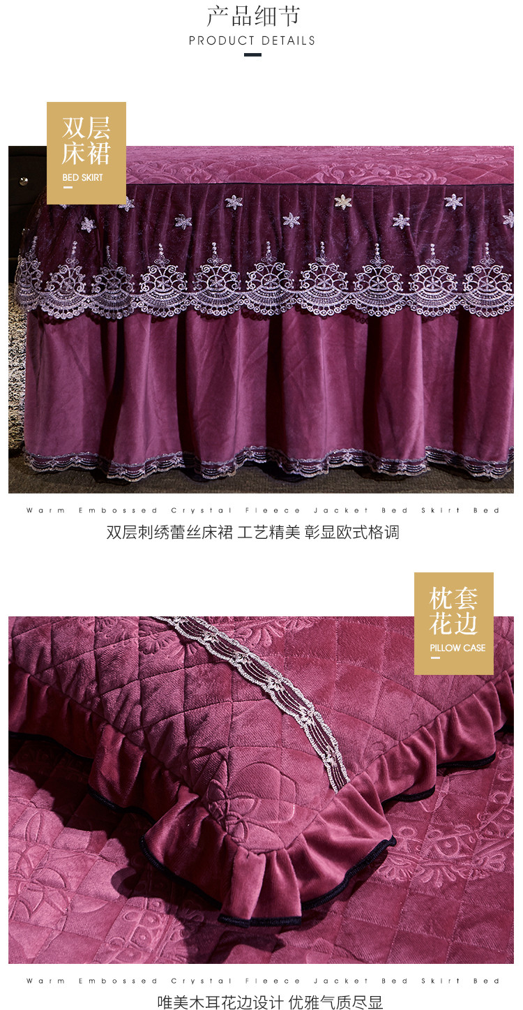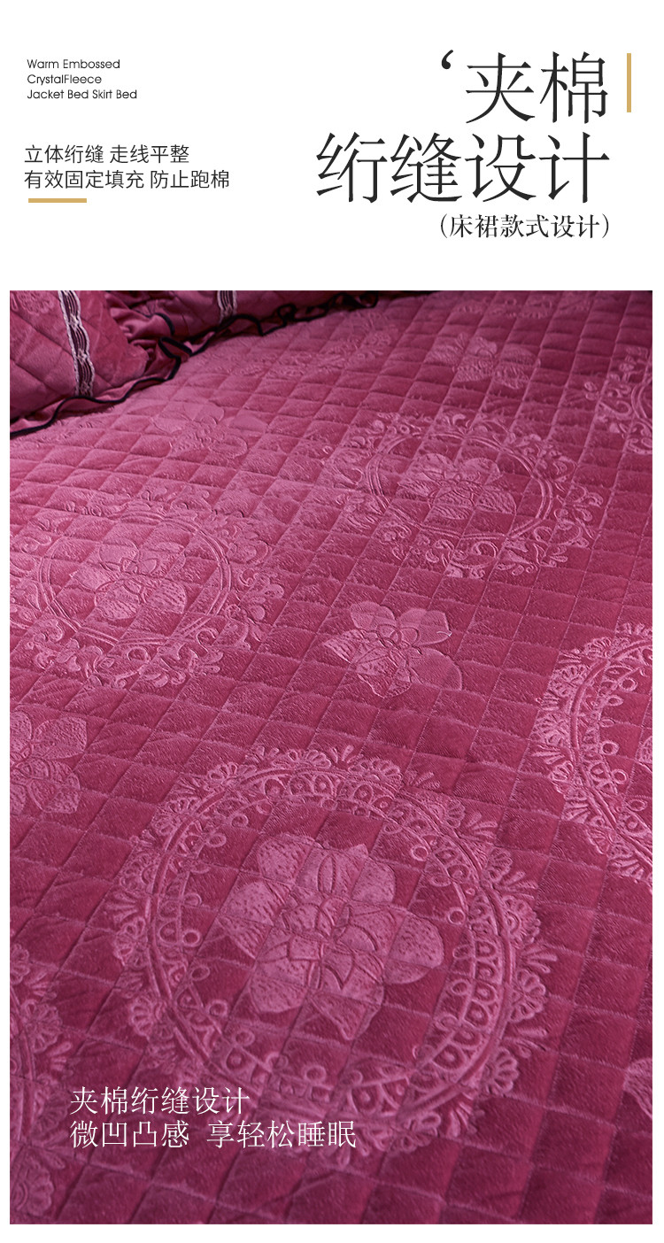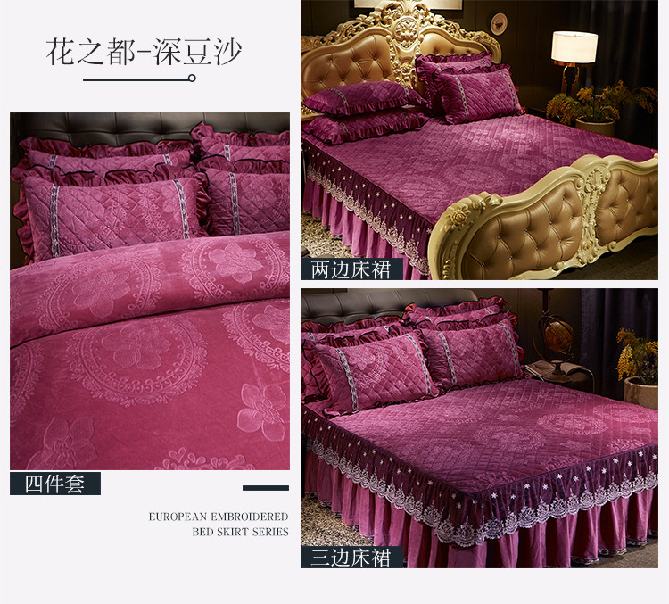 商品名称:宜凡家纺 2019新款水晶绒夹棉床裙四件套 花之都-深豆沙