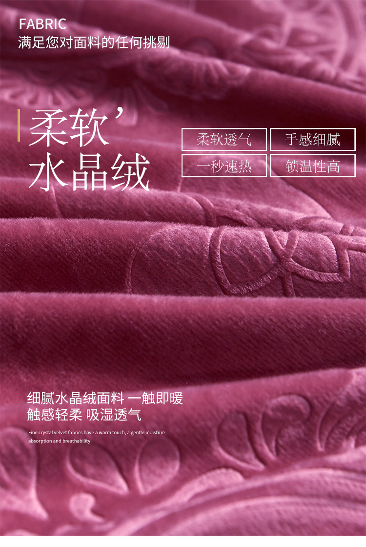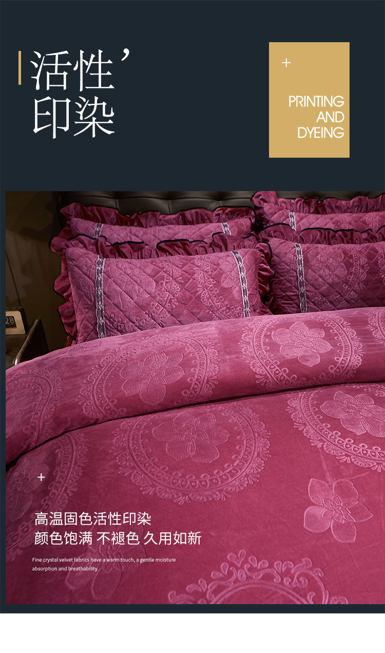 (总)宜凡家纺 2025新款婴儿绒压花全夹棉床盖四件套,韵雅-中国红,韵雅-黑天鹅