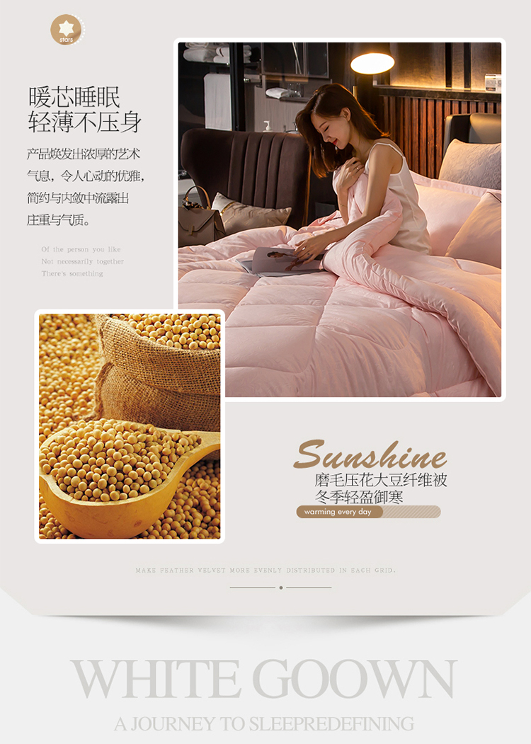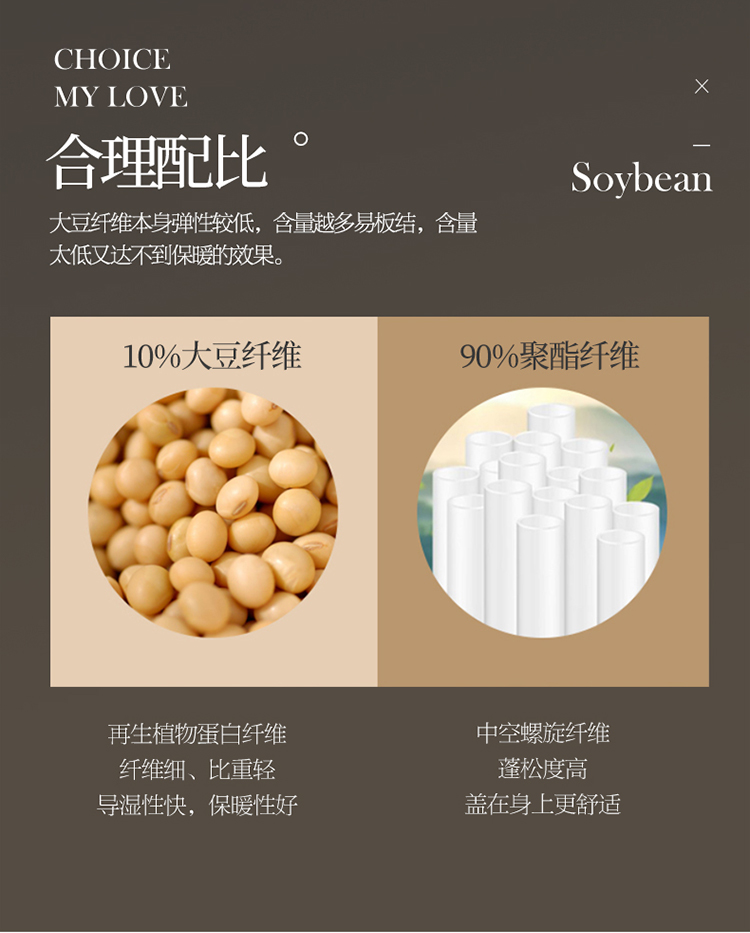 • 填充纤维种类: 大豆蛋白改性聚酯纤维