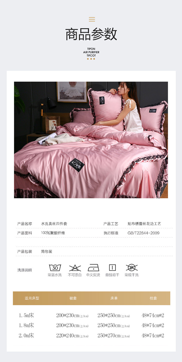 商品名称:铠畅 2020新款水洗真丝四件套 莫妮卡 嫩粉