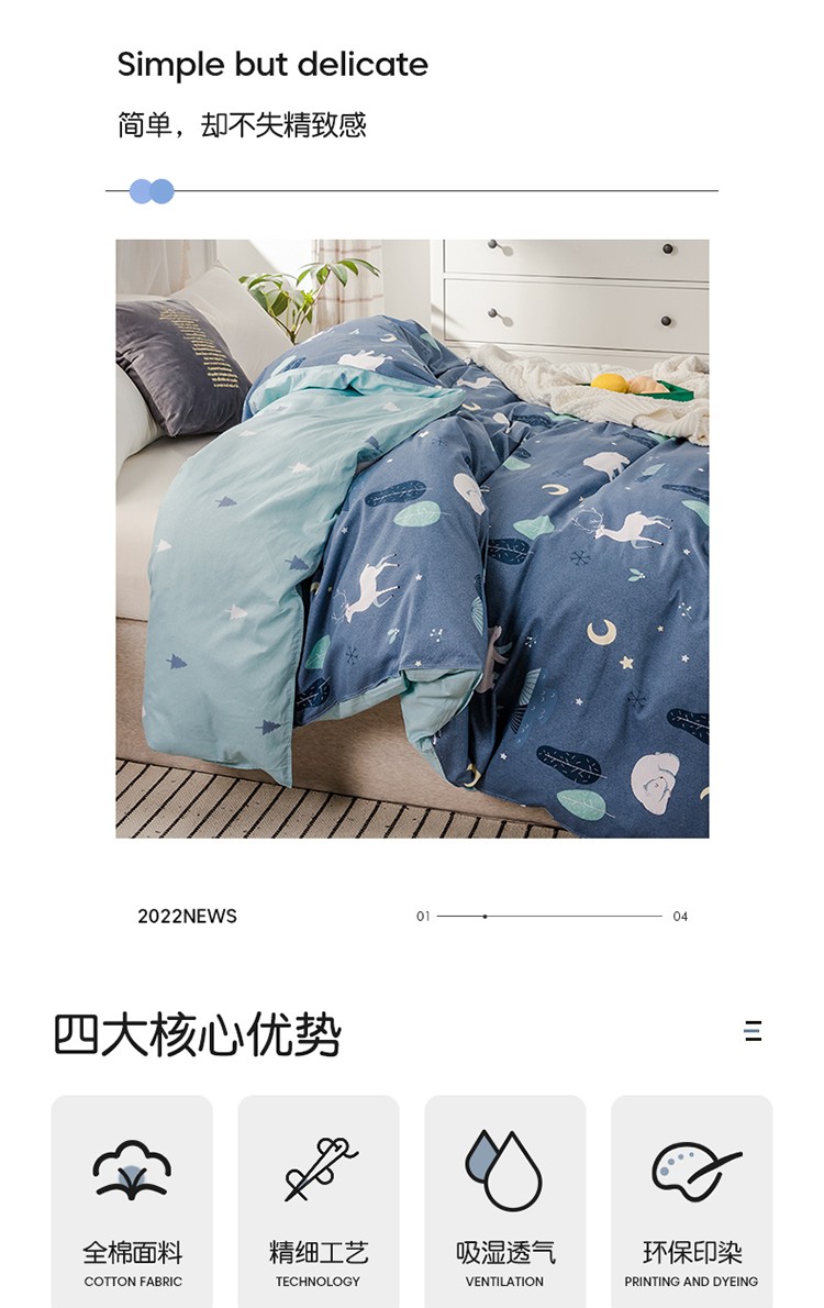 商品名称:(总)铭成 2022新款全棉12868小清新系列单被套(预留尺寸)