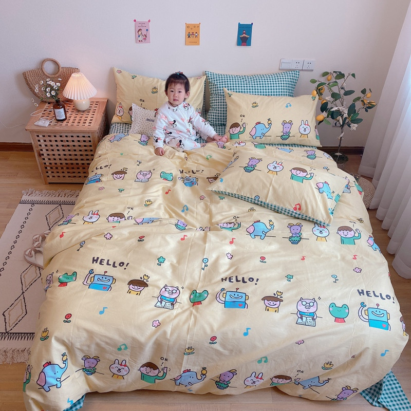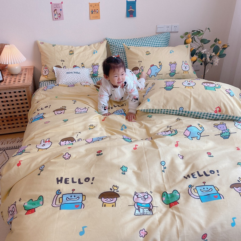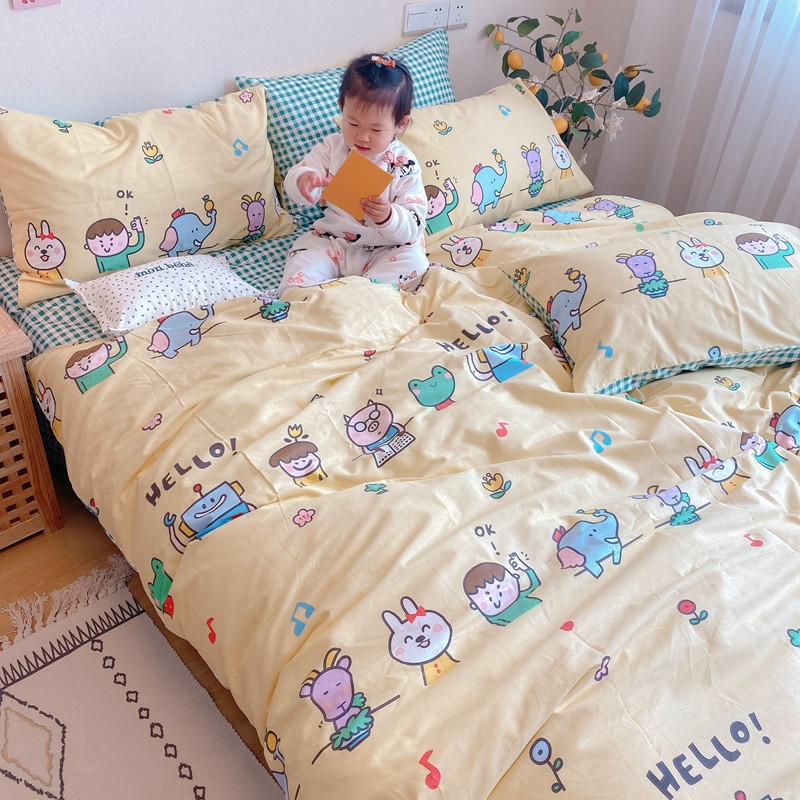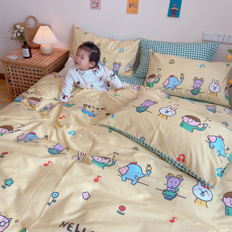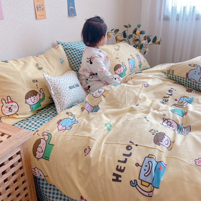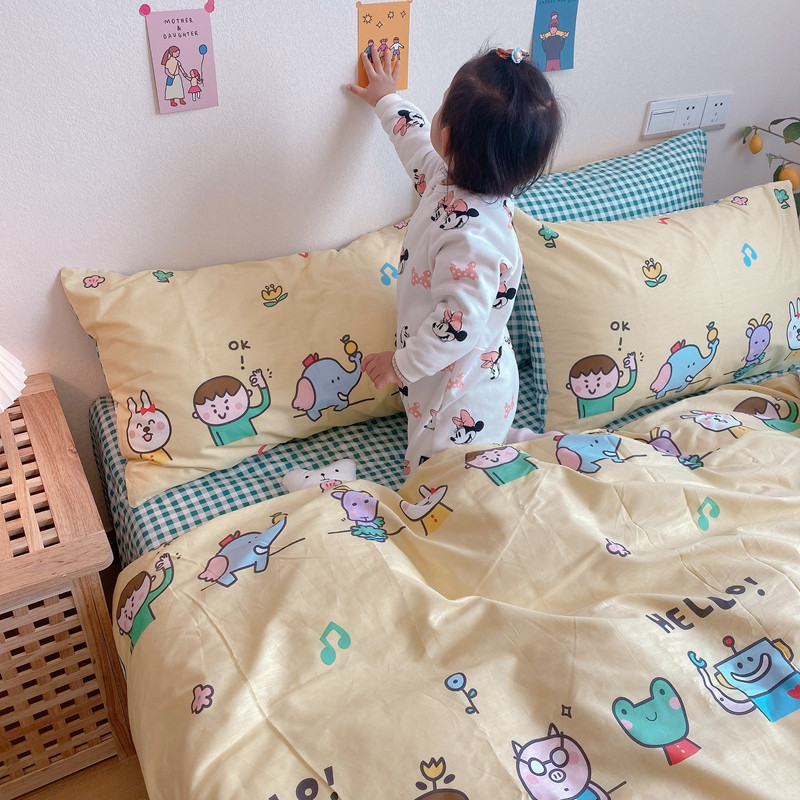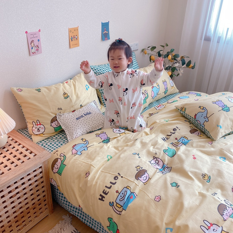 沐棉 2020新款全棉13370四件套模特图 童乐园-黄