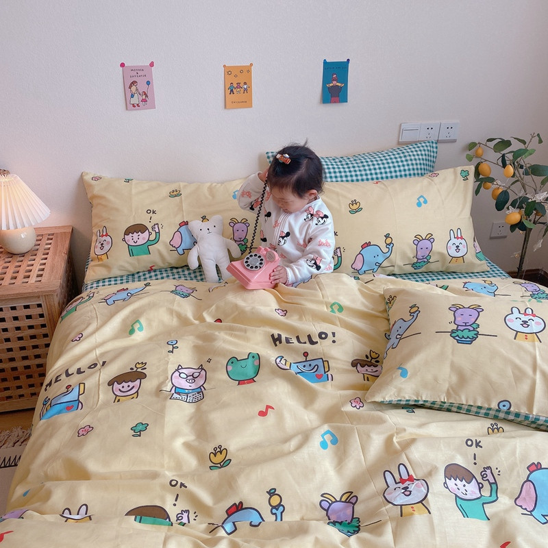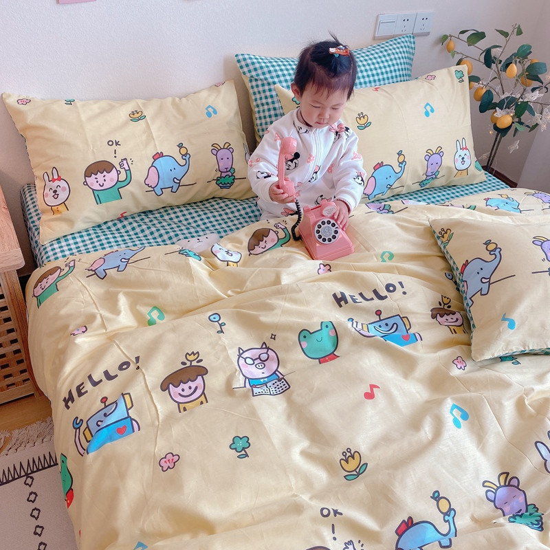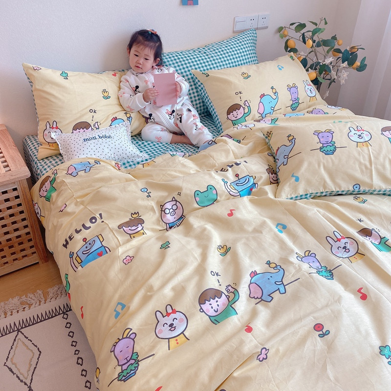 商品名称:沐棉 2020新款全棉13370四件套模特图 童乐园-黄