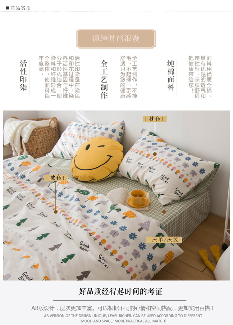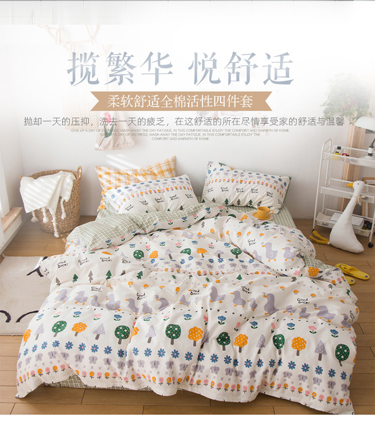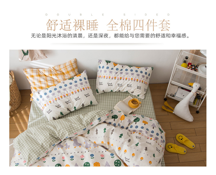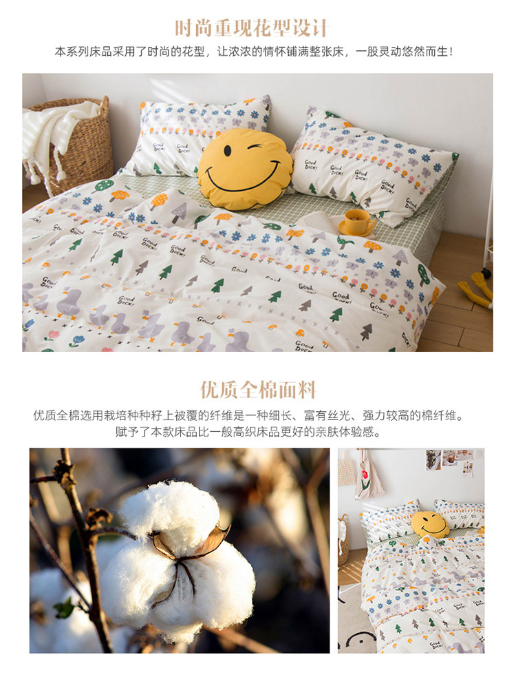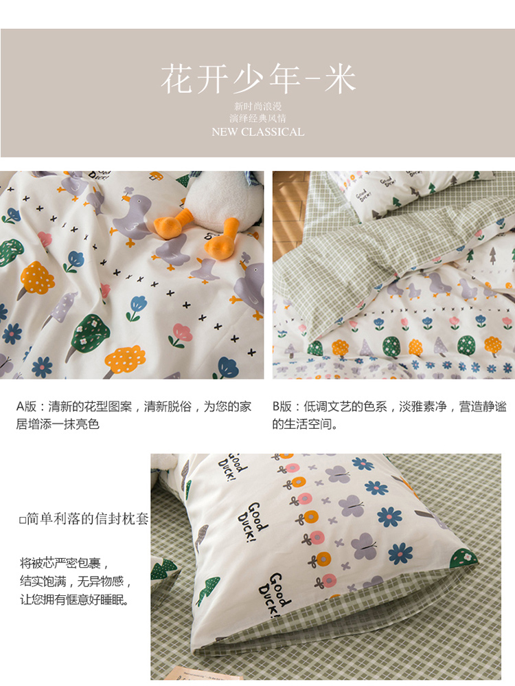 商品名称:窝米 2020春夏新品13370全棉四件套萌宠风系列 花开少年-米