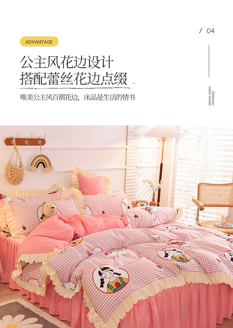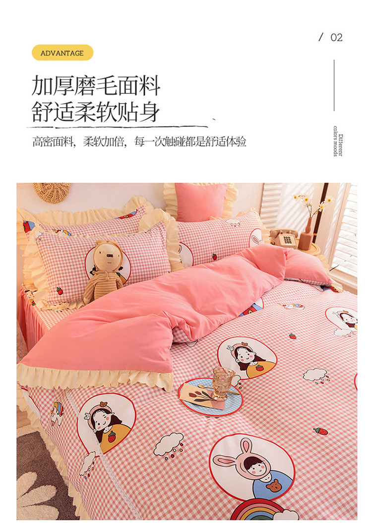 当前位置: 91家纺网 > 商品网购 > 床品套件 > 四件套 > 磨绒四件套 > 梦之岛 2020新款韩版磨毛蕾丝四件套 甜心女孩