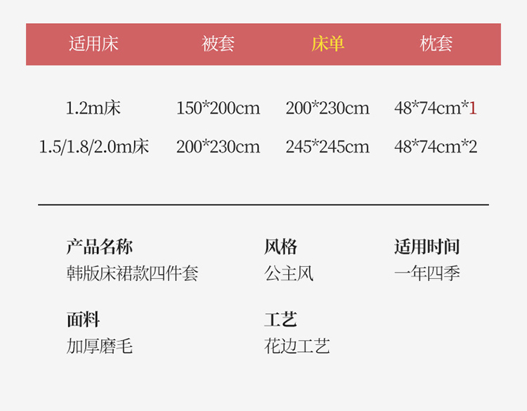 1.8m床裙款四件套 | ¥65.00 |
