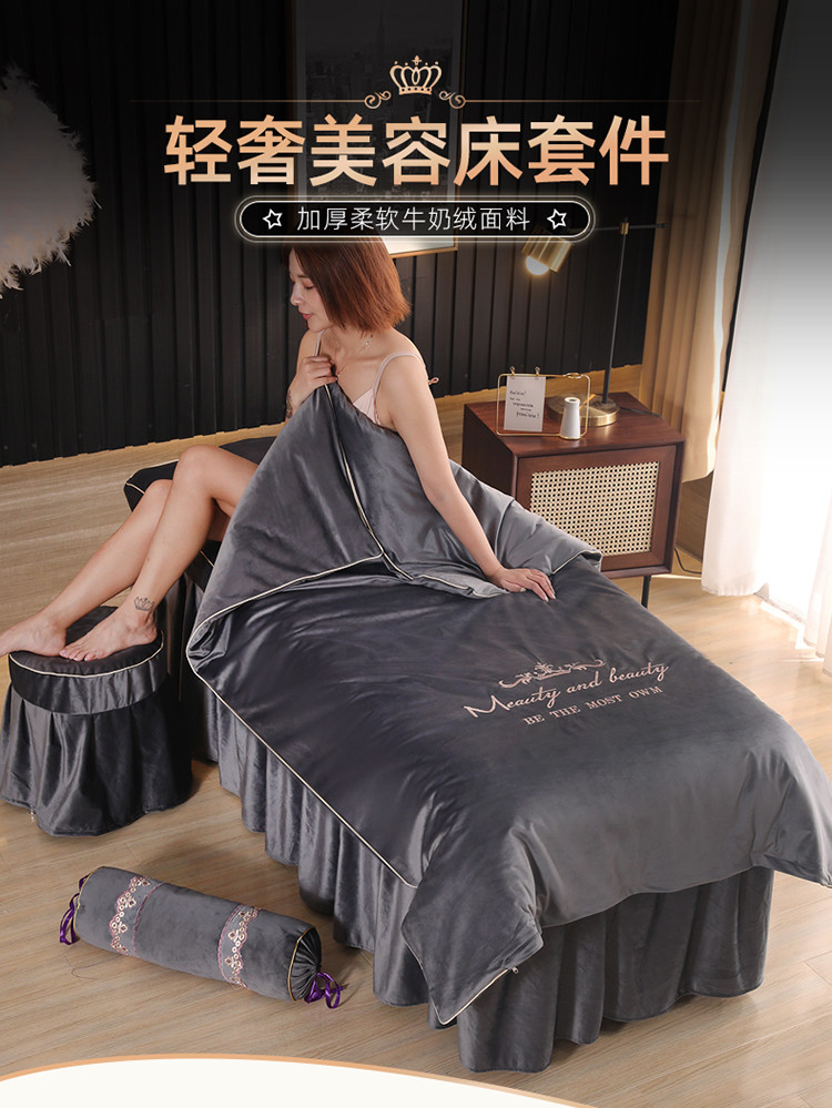 (总)诗薇娅 2025新款加厚兔毛绒美容床罩 美容床罩四件套,白+粉玉,白+红豆沙,白+咖色,白+卡其,白+墨绿,白+暖豆沙,白+深灰,白+紫色,本白,卡其,白配浅卡其,浅卡其,深灰色