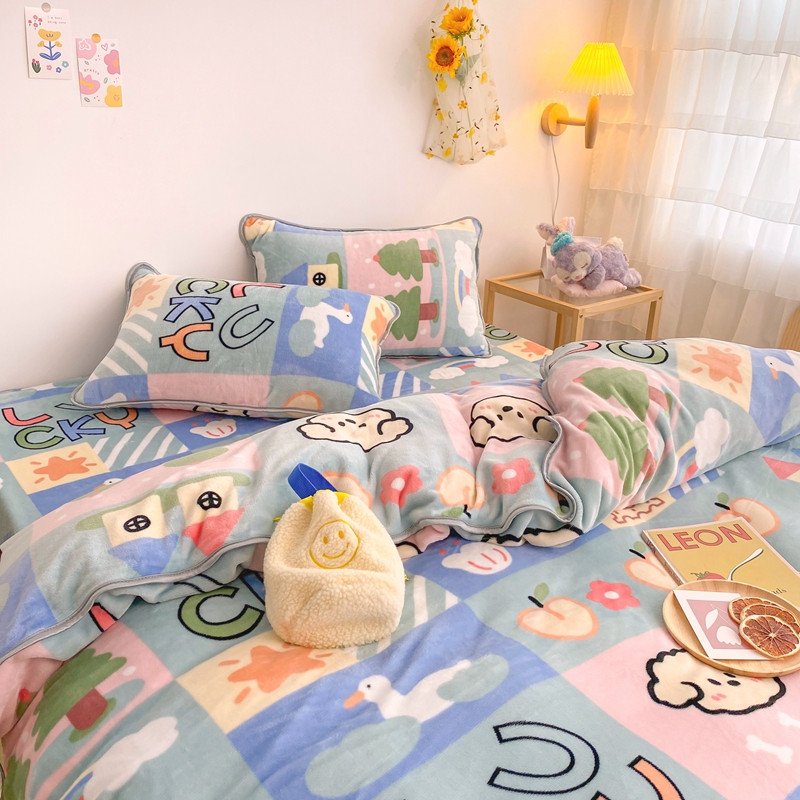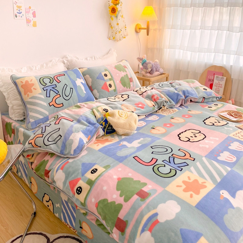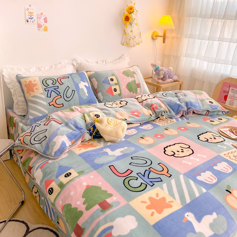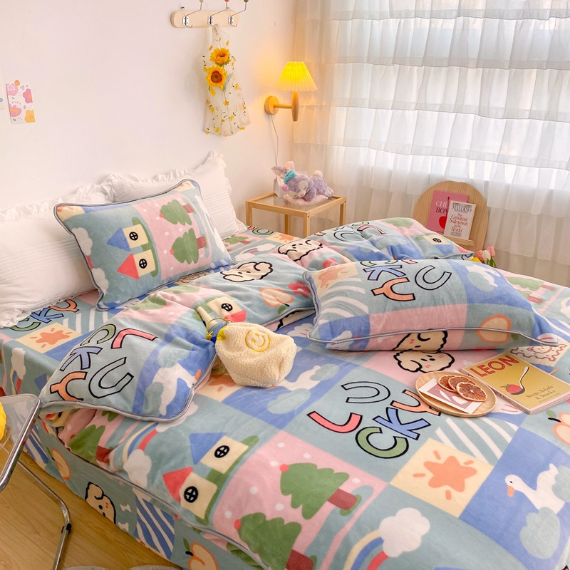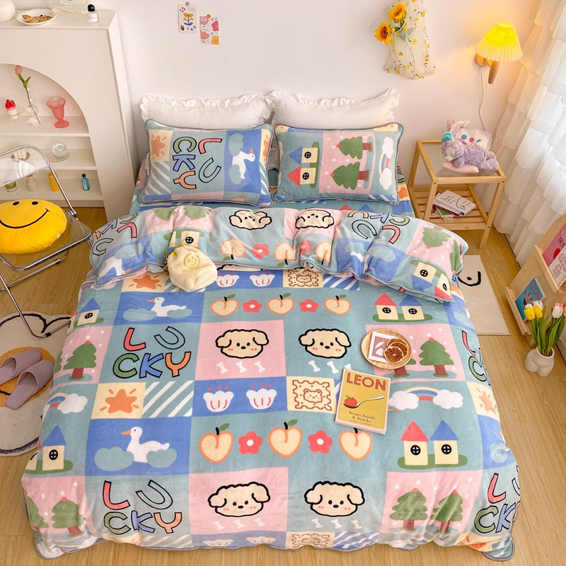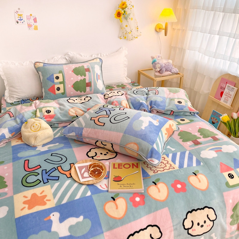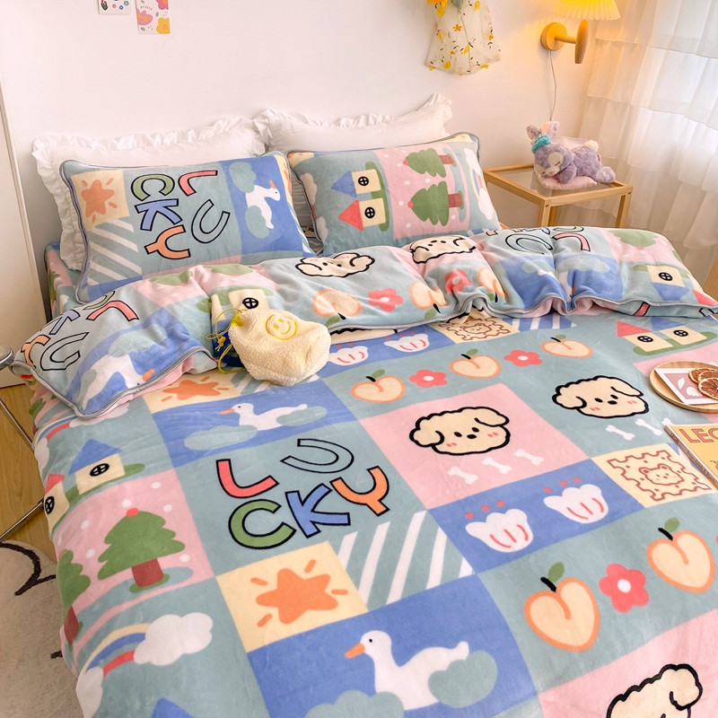 顾里 2020新款韩国ins高端保暖牛奶绒套件 幸运日