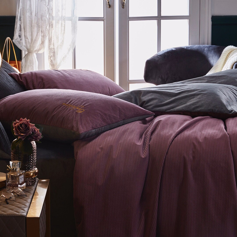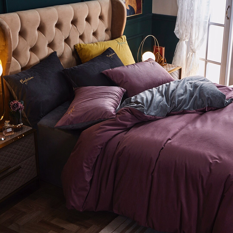 玖玖爱 2020新款提花绒四件套 豆沙色