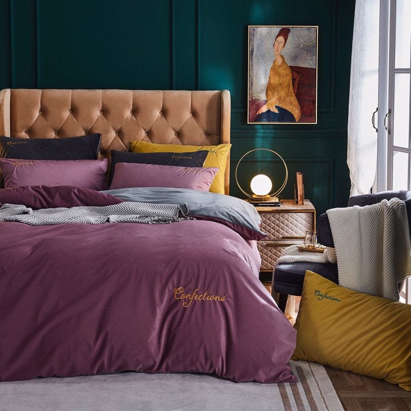 (总)玖玖爱 2023新款100支双股长绒棉刺绣四件套-宝莉系列,宝莉-戴妃黄,宝莉-粉豆沙,宝莉-茗翠蓝,宝莉-西域红,宝莉-紫灰
