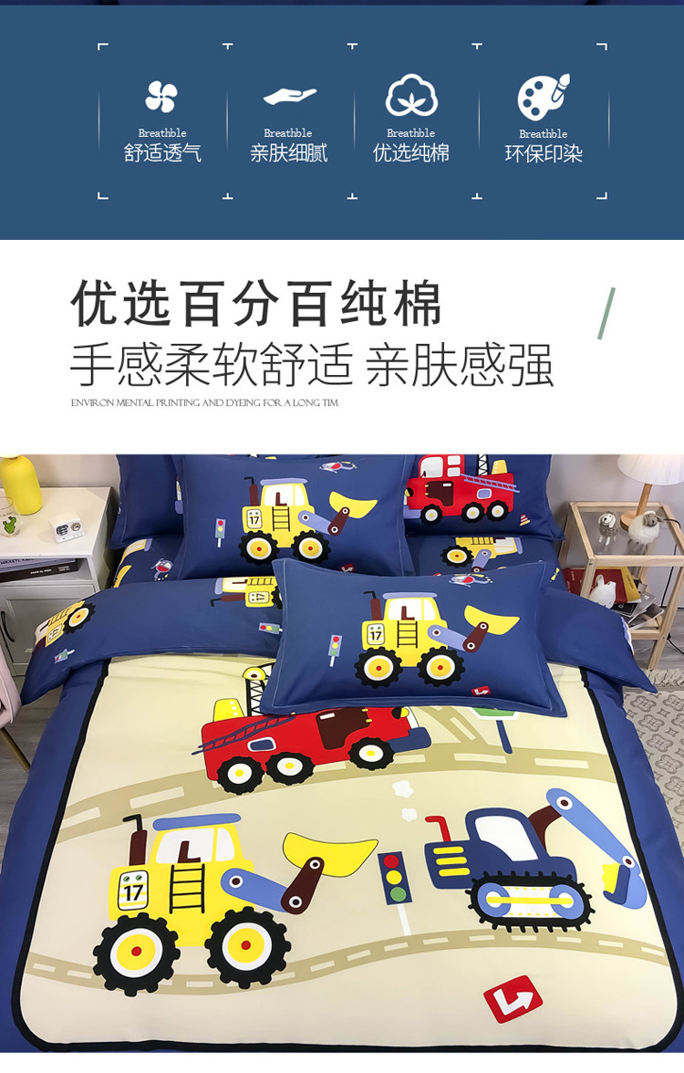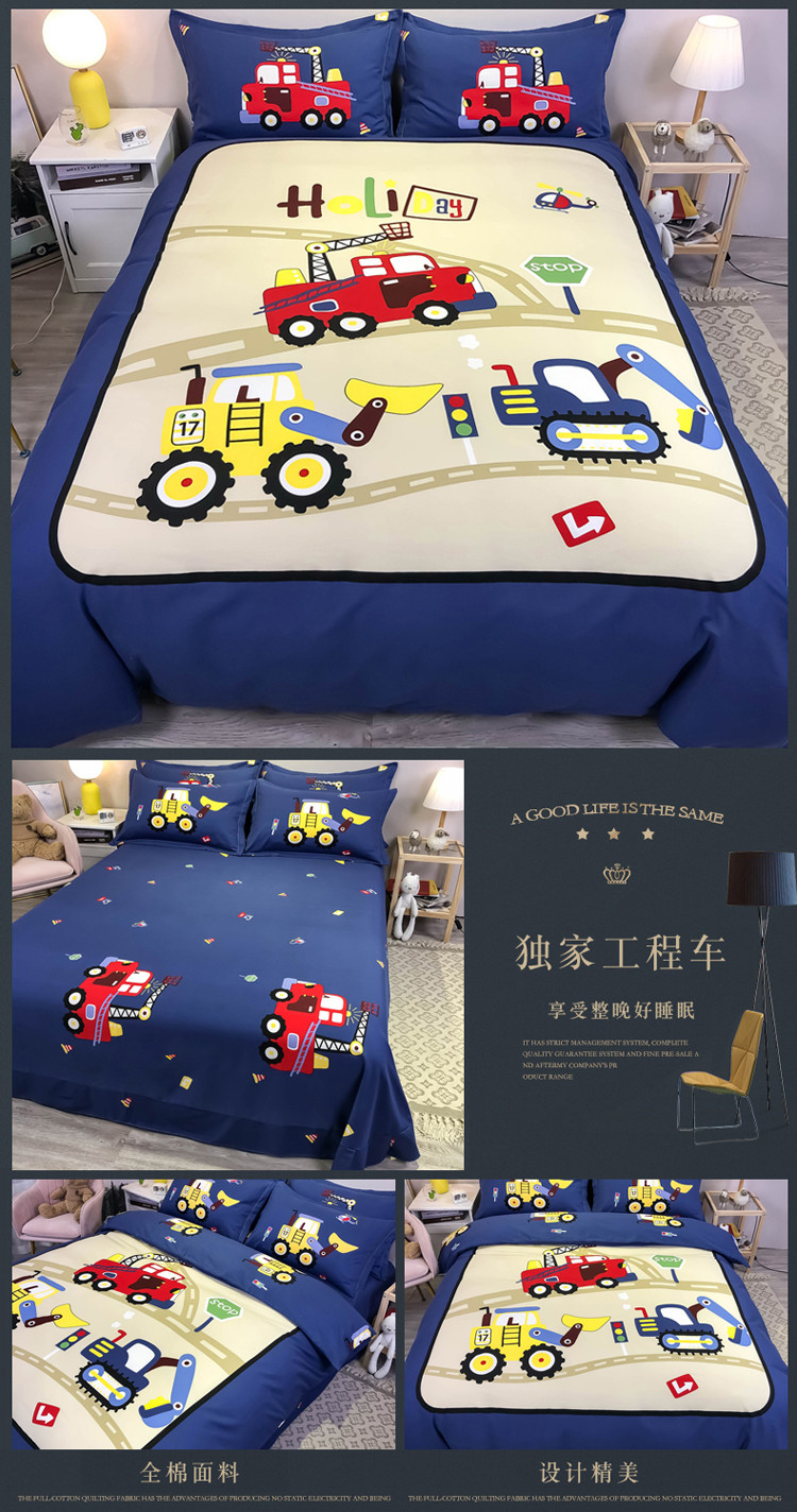 当前位置: 91家纺网 > 商品网购 > 床品套件 > 四件套 > 全棉普通四件套 > 金爱家 2021新款13372大版全棉卡通四件套工程车