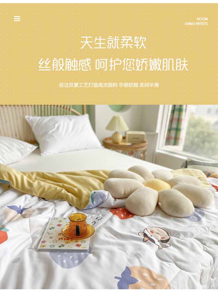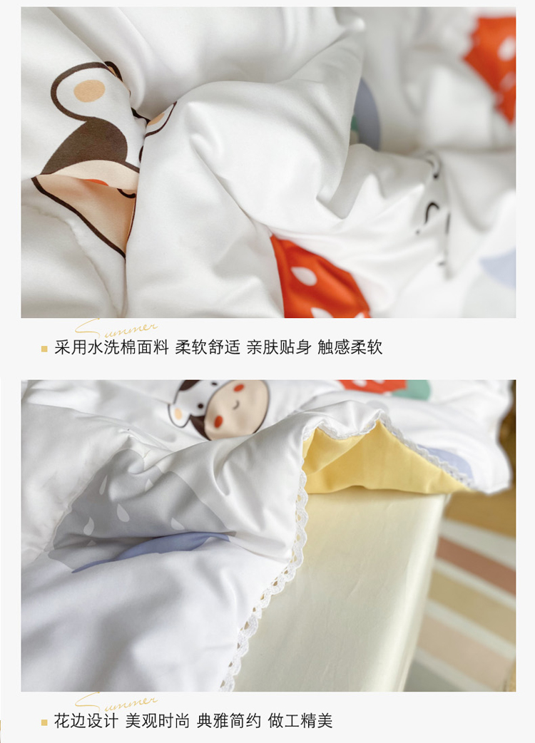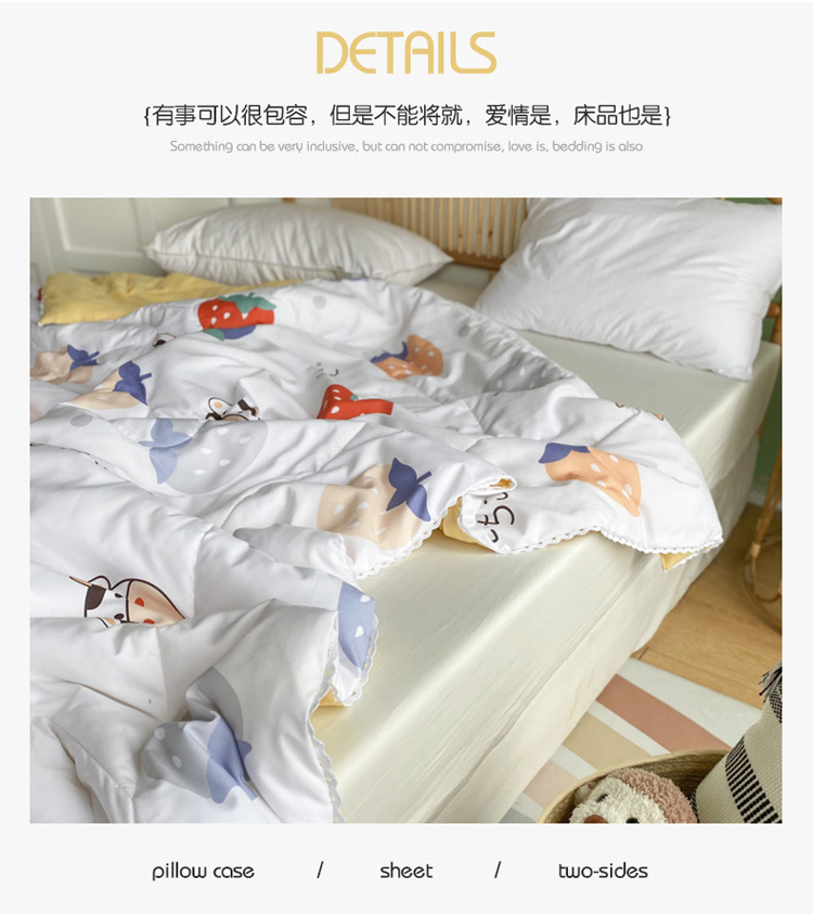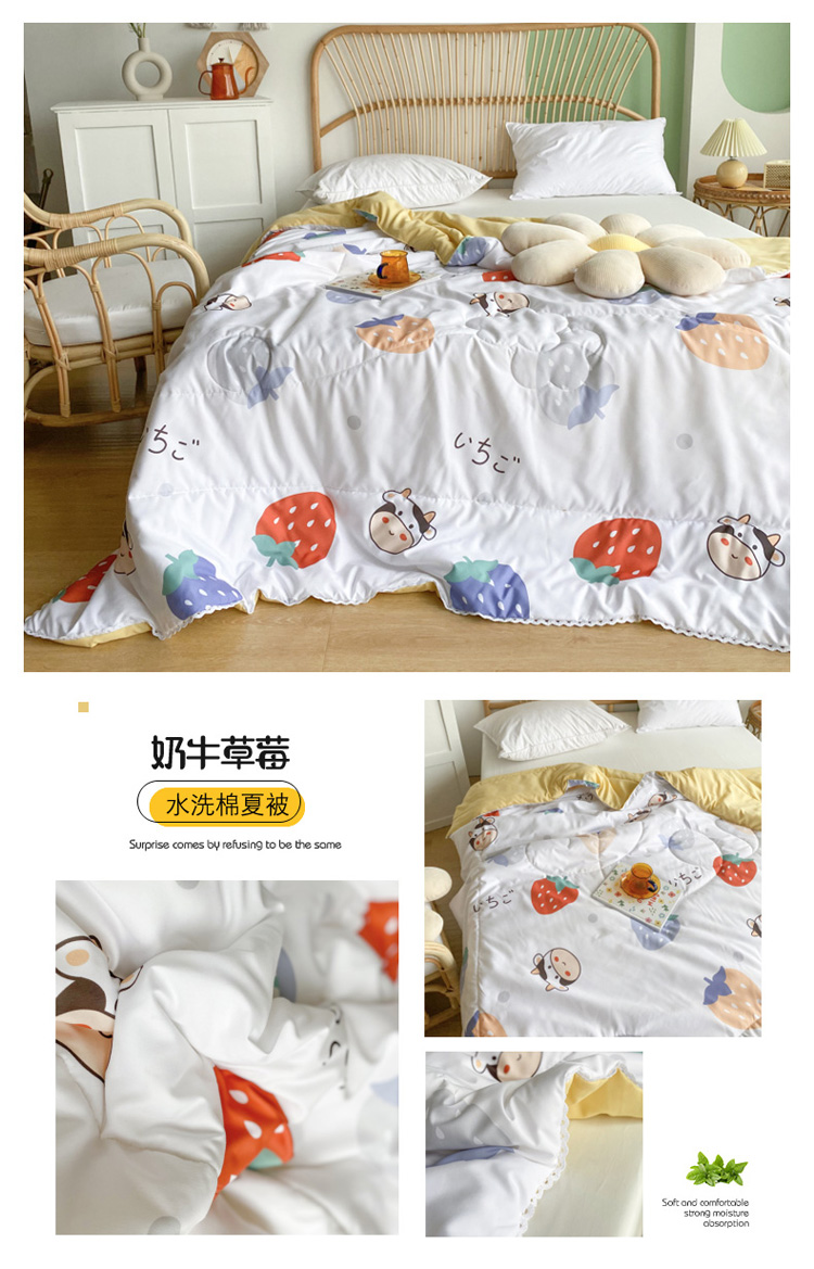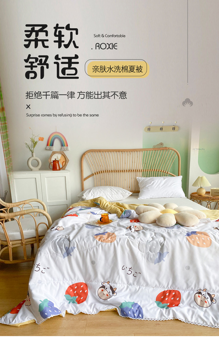 寐居 2021新款水洗棉小花边单夏被 奶牛草莓