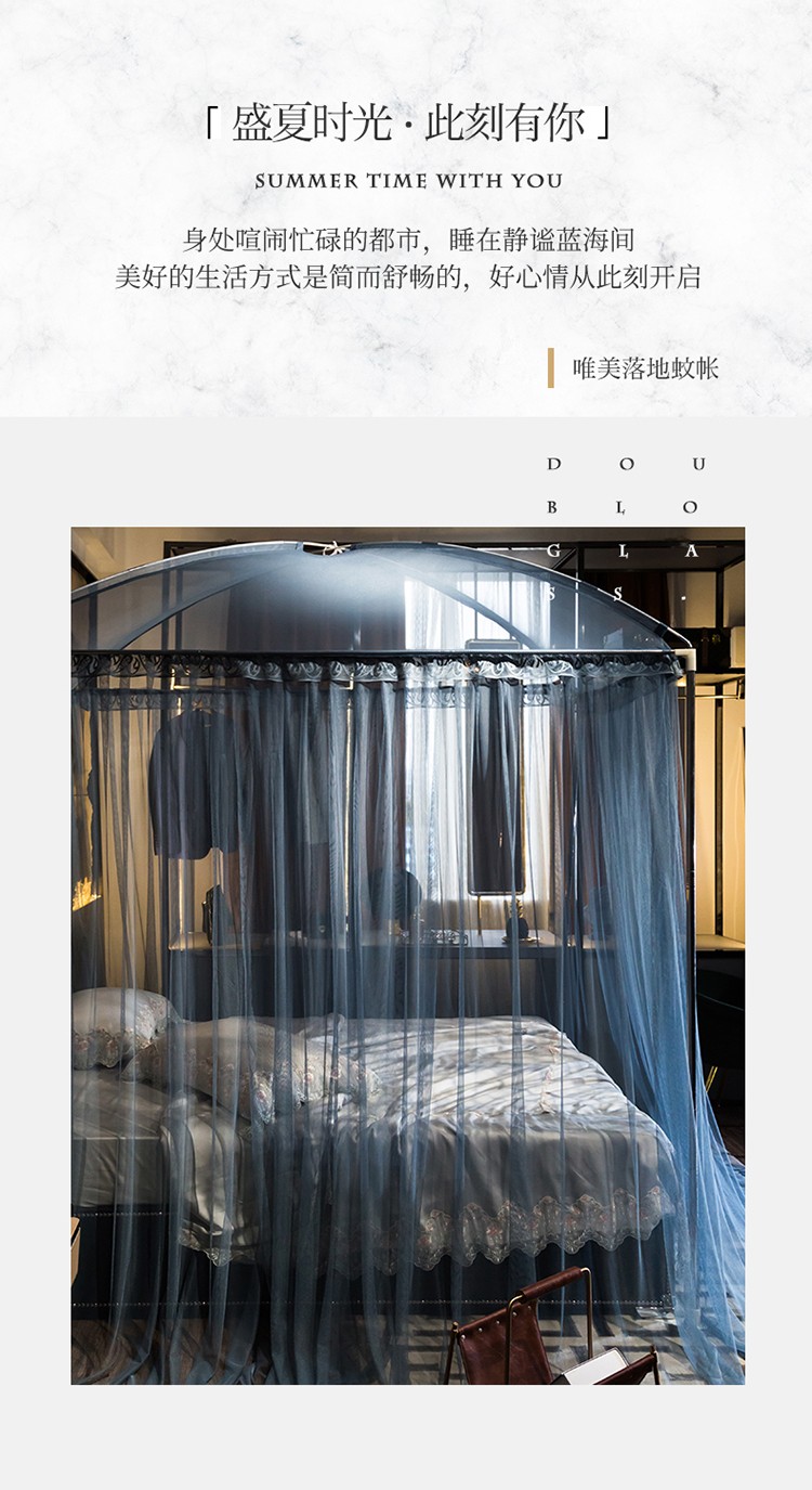 飞轮海蚊帐 新款落地铁艺烤漆支架蚊帐-ML98 黛蓝