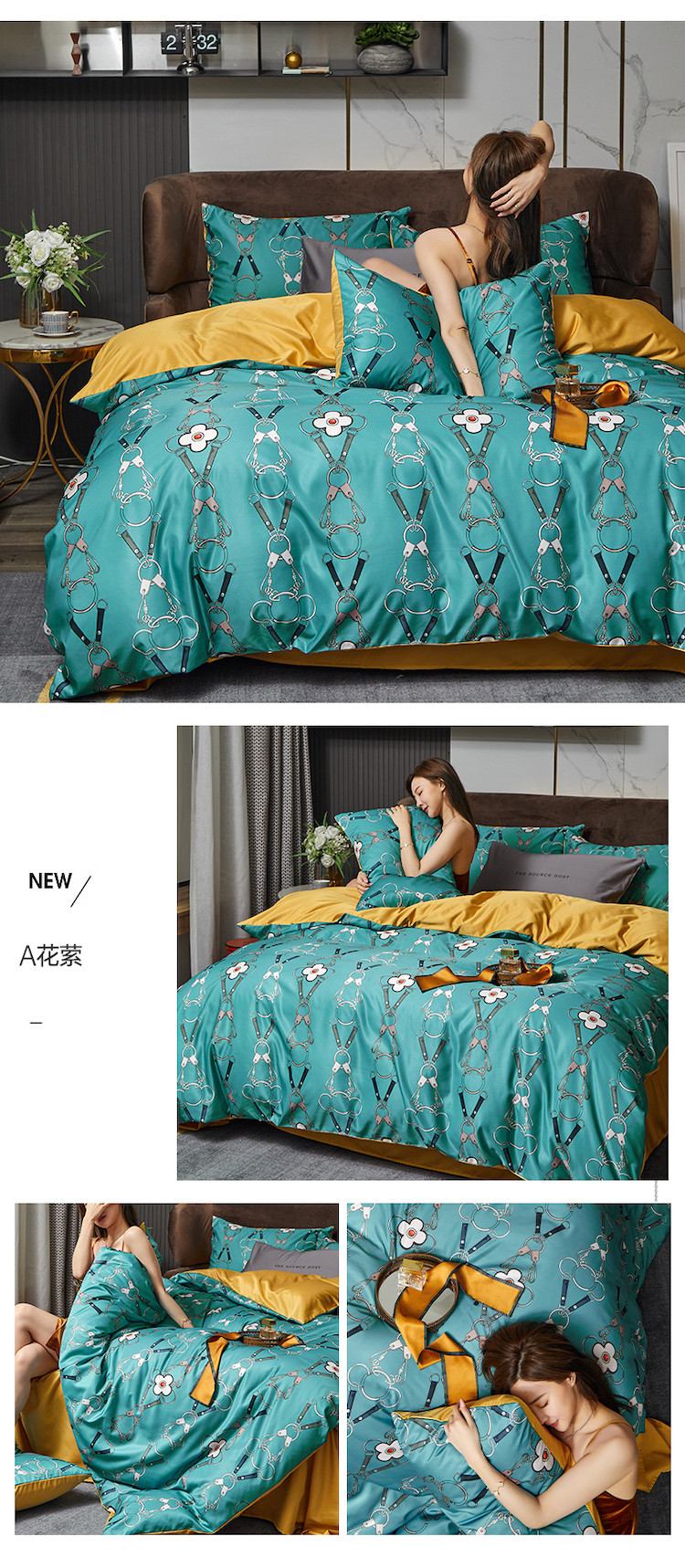 凡客 2021春夏新款60支水洗真丝数码印花四件套轻奢风系列 雅阁布里