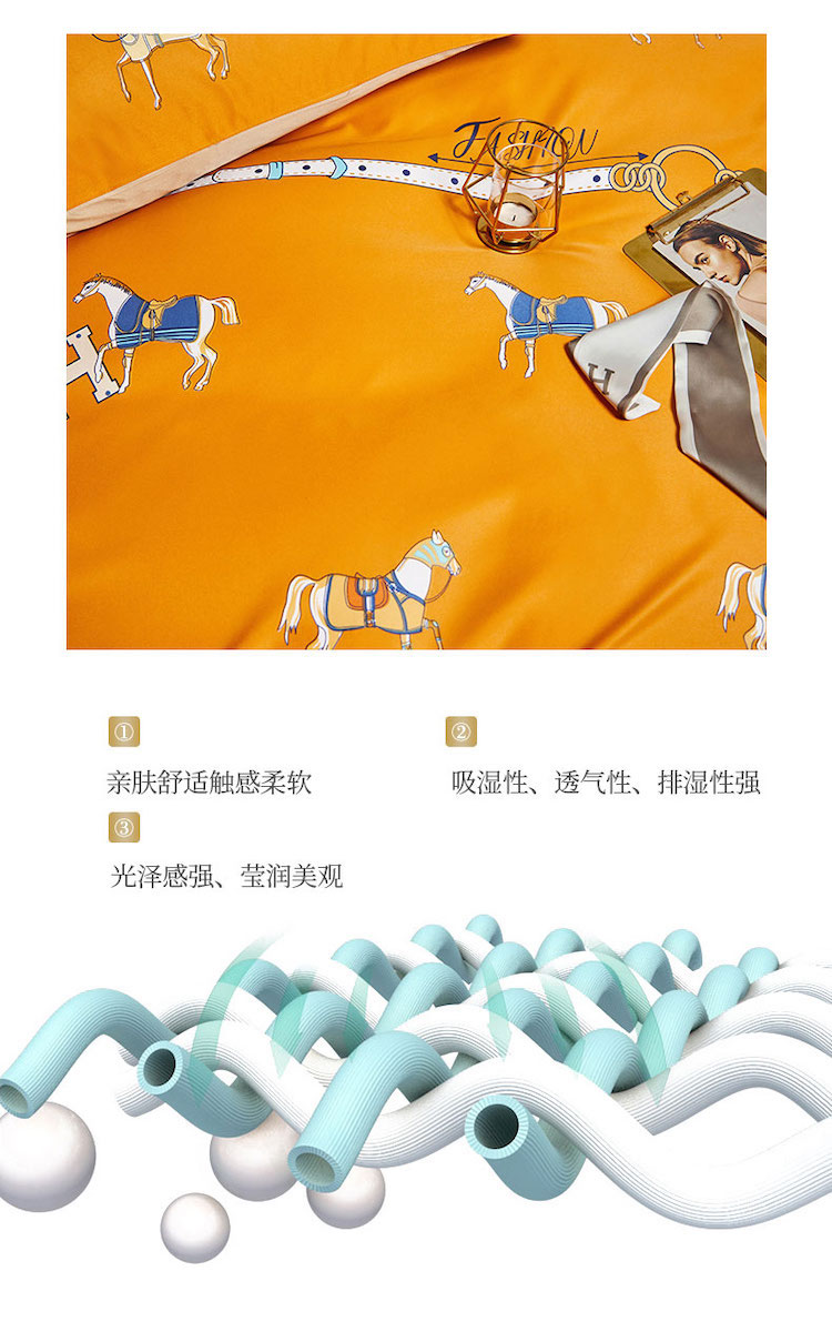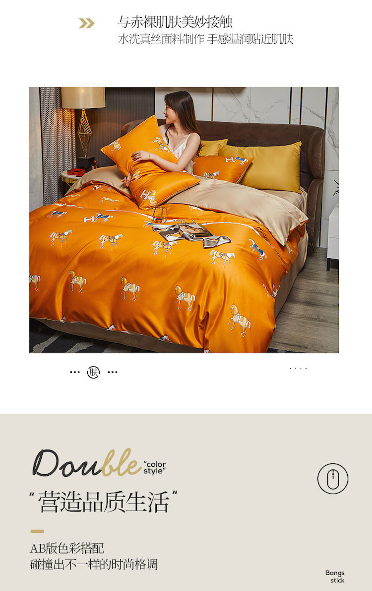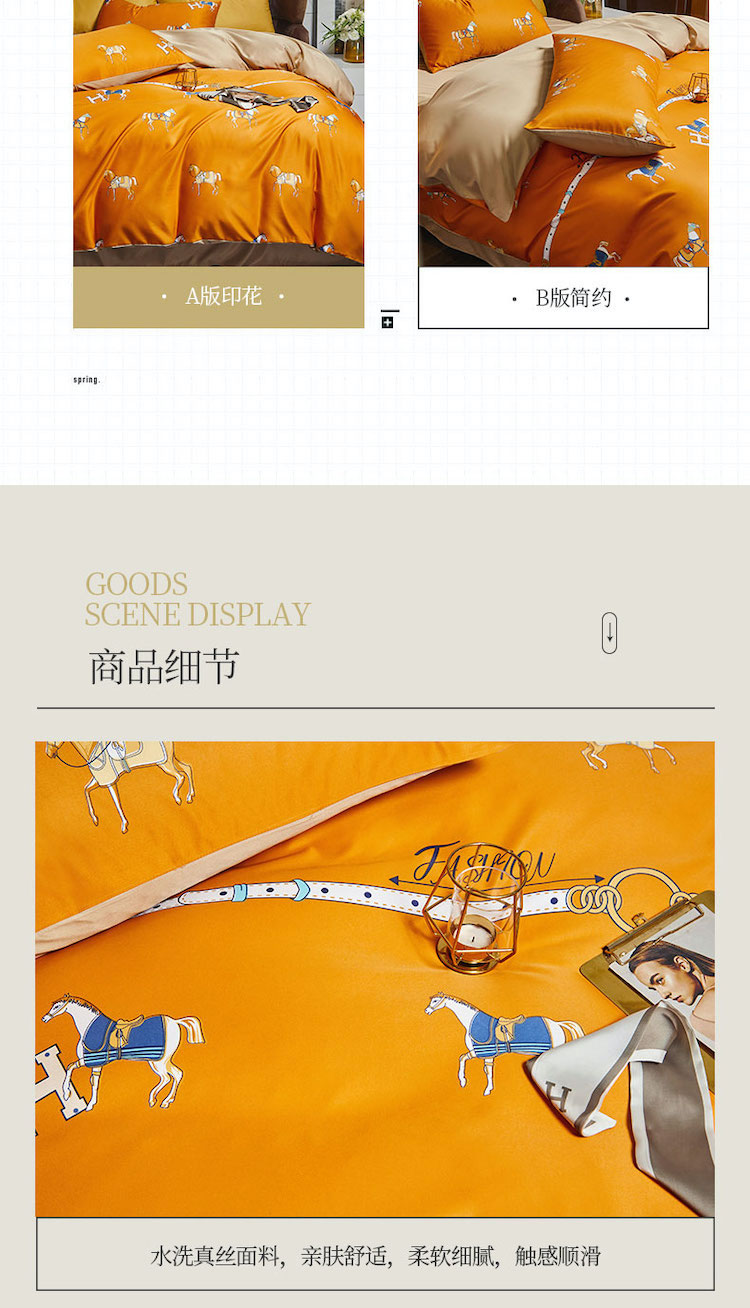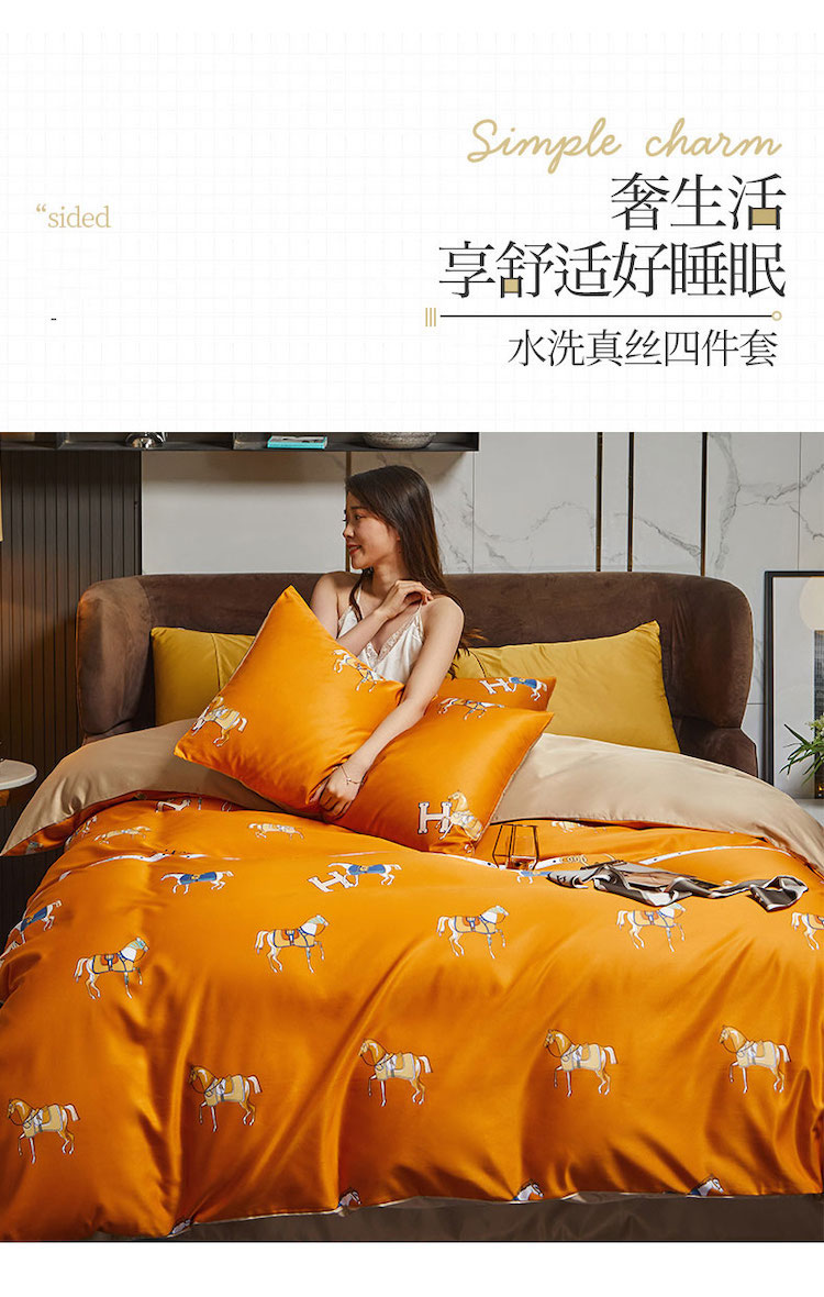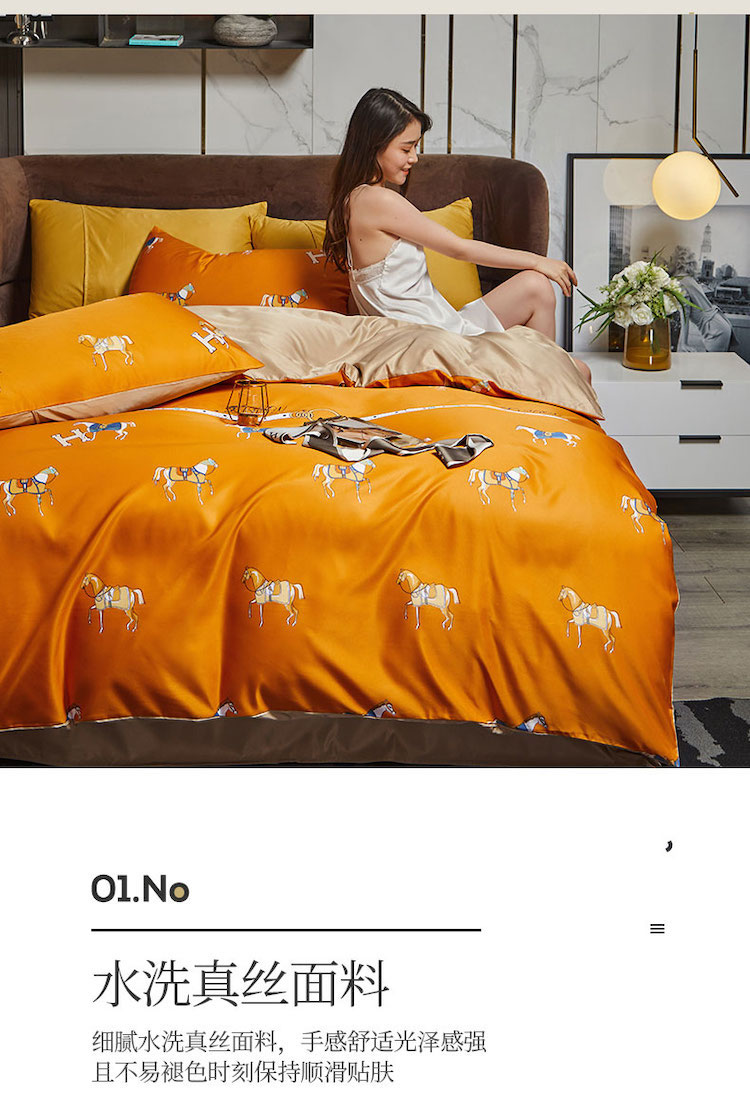 凡客 2021春夏新款60支水洗真丝数码印花四件套轻奢风系列 帕特里克