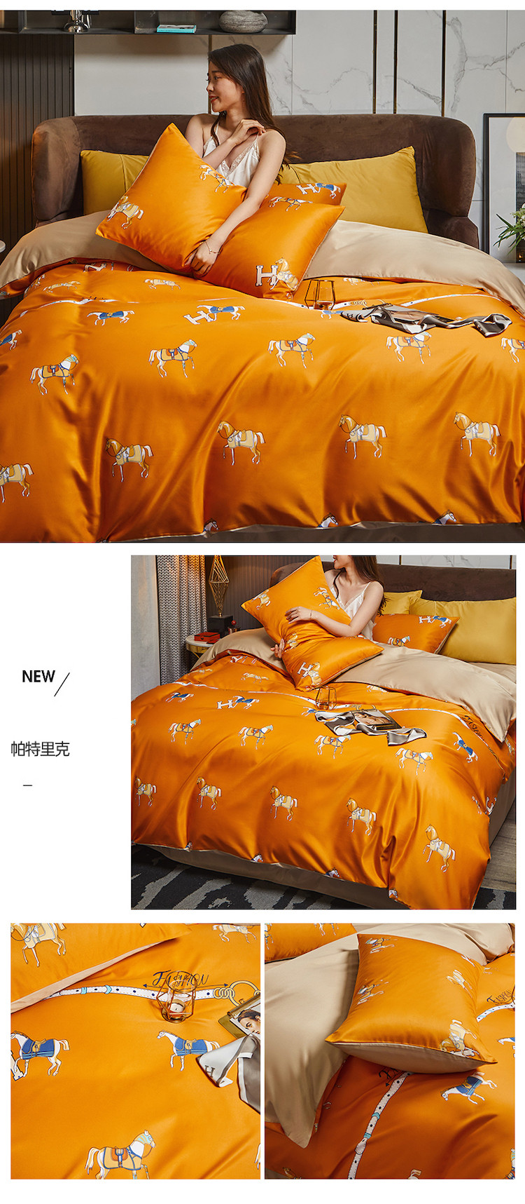 商品名称:凡客 2021春夏新款60支水洗真丝数码印花四件套轻奢风系列 帕特里克