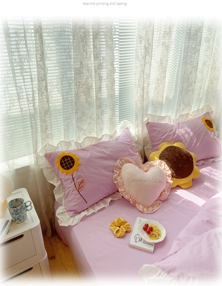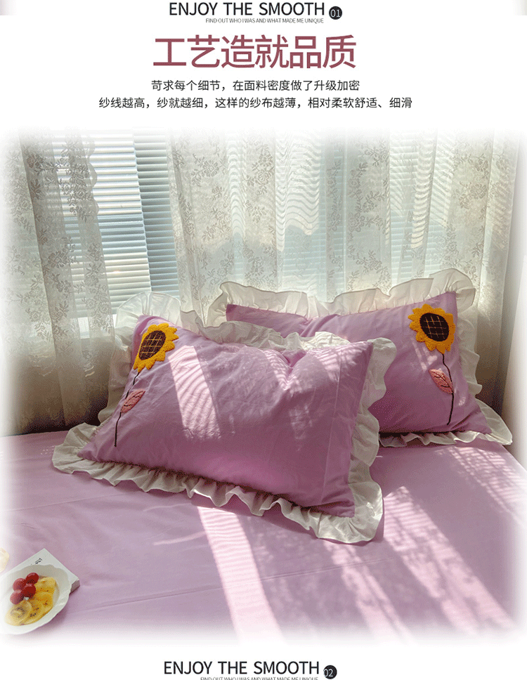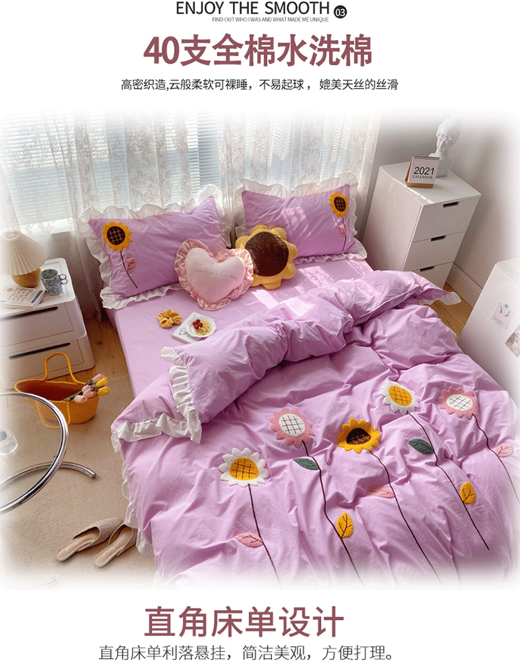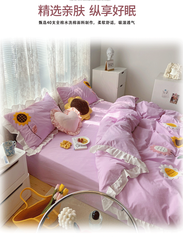 淑女公社 2021新款全棉毛巾绣向日葵系列四件套 紫色