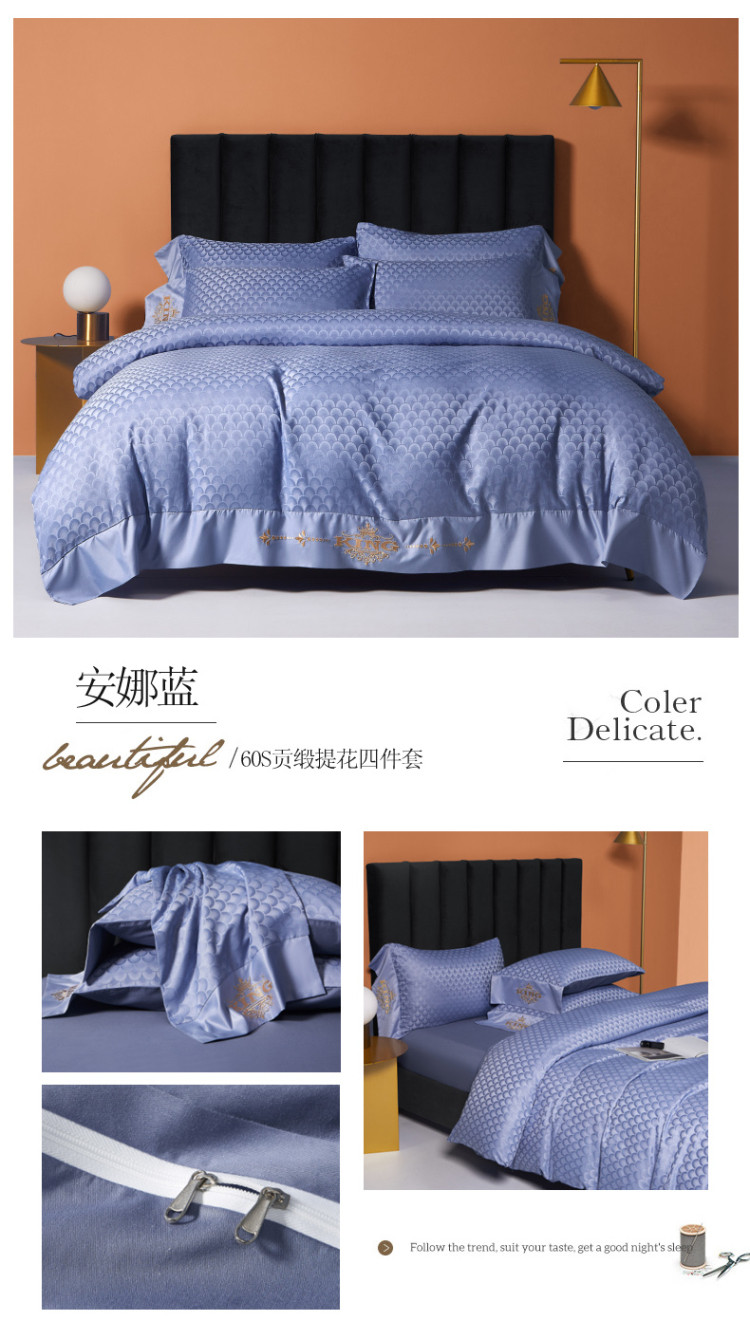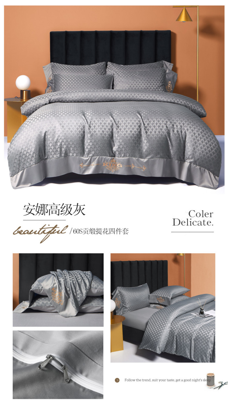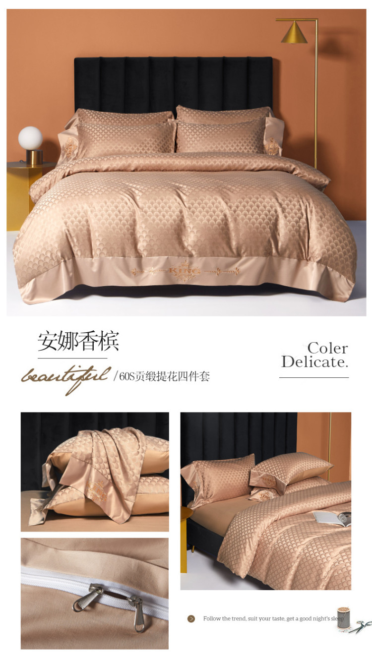 (总)眠帛2021新款60S贡缎提花全棉轻奢风四件套