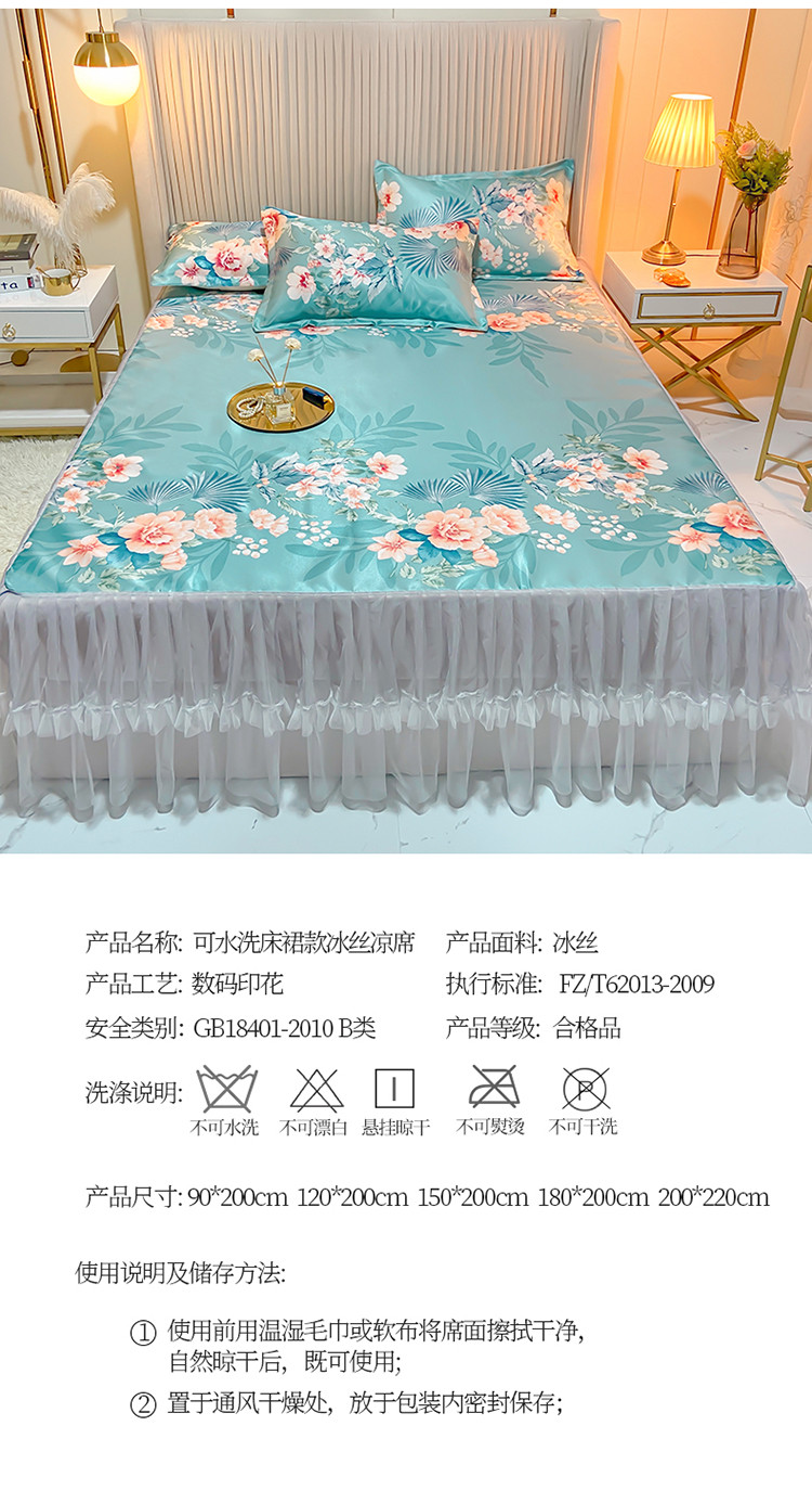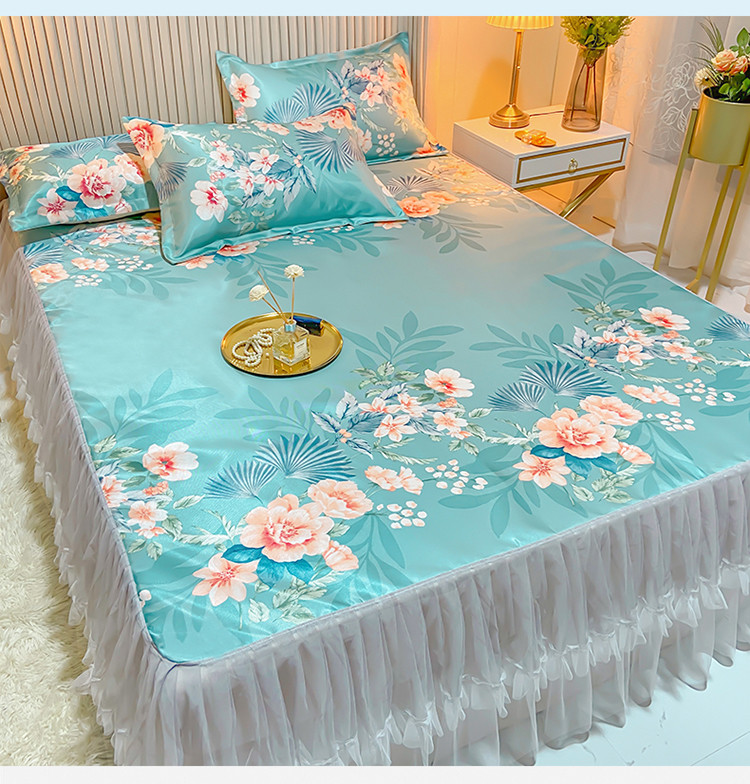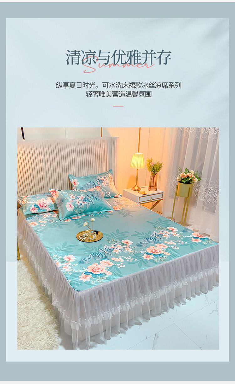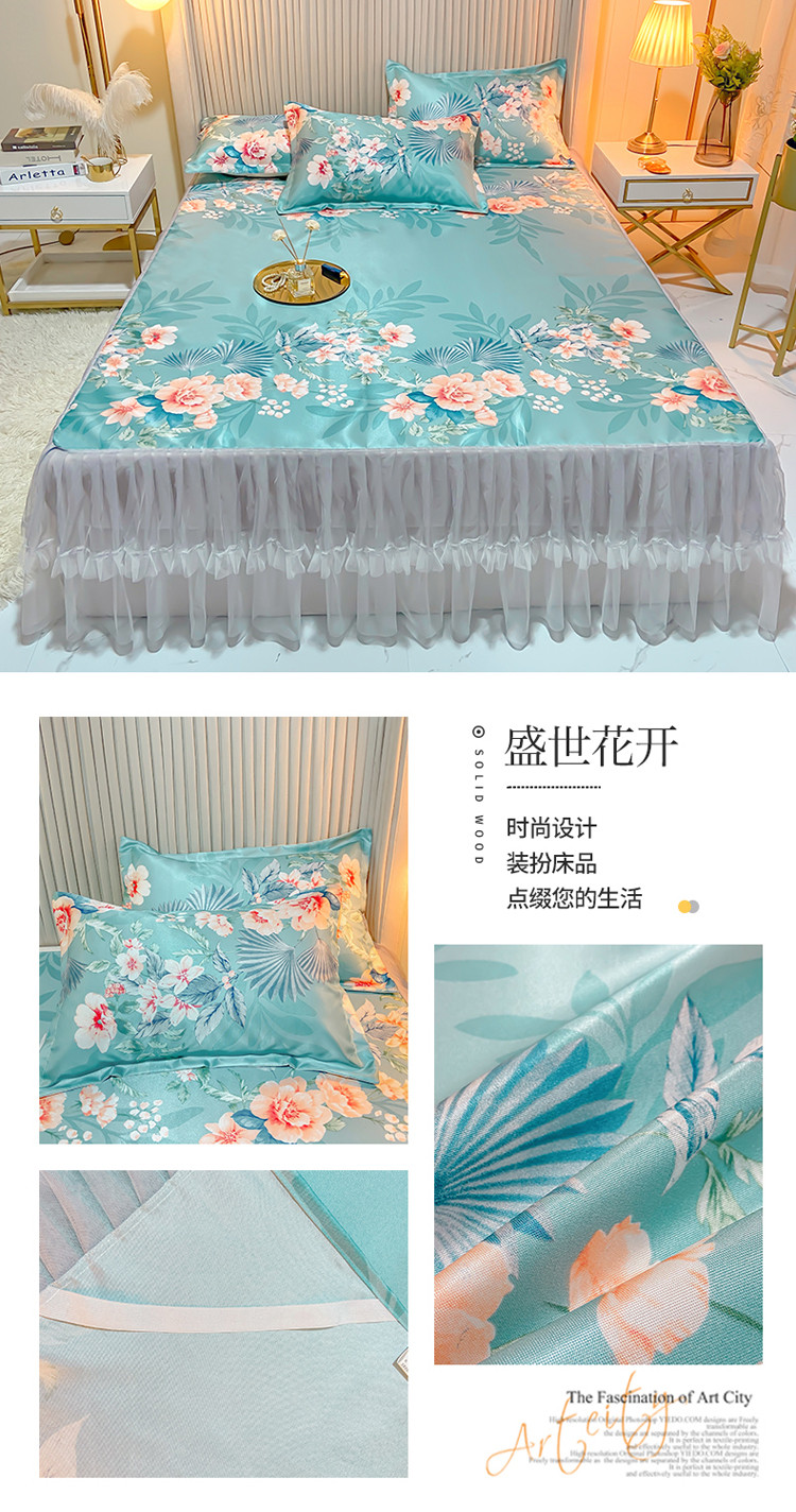 商品名称:ds生活馆 凉席冰丝席可水洗冰丝席床裙款冰丝席三件套 盛世花开