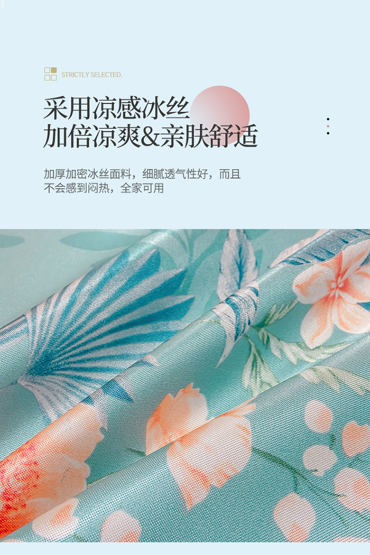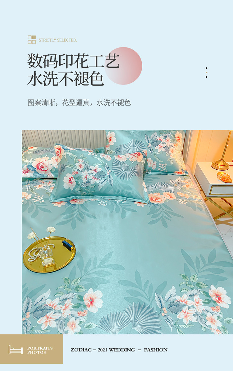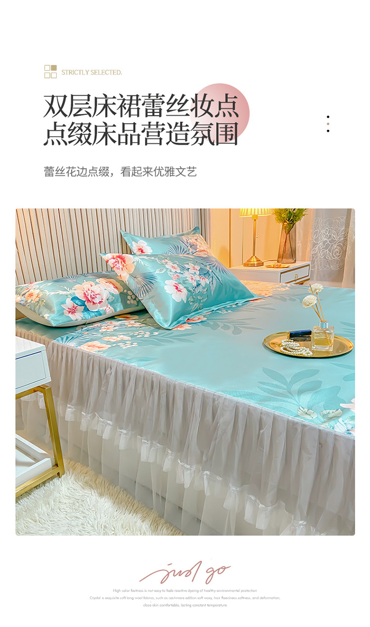 商品名称:ds生活馆 凉席冰丝席可水洗冰丝席床裙款冰丝席三件套 盛世花开