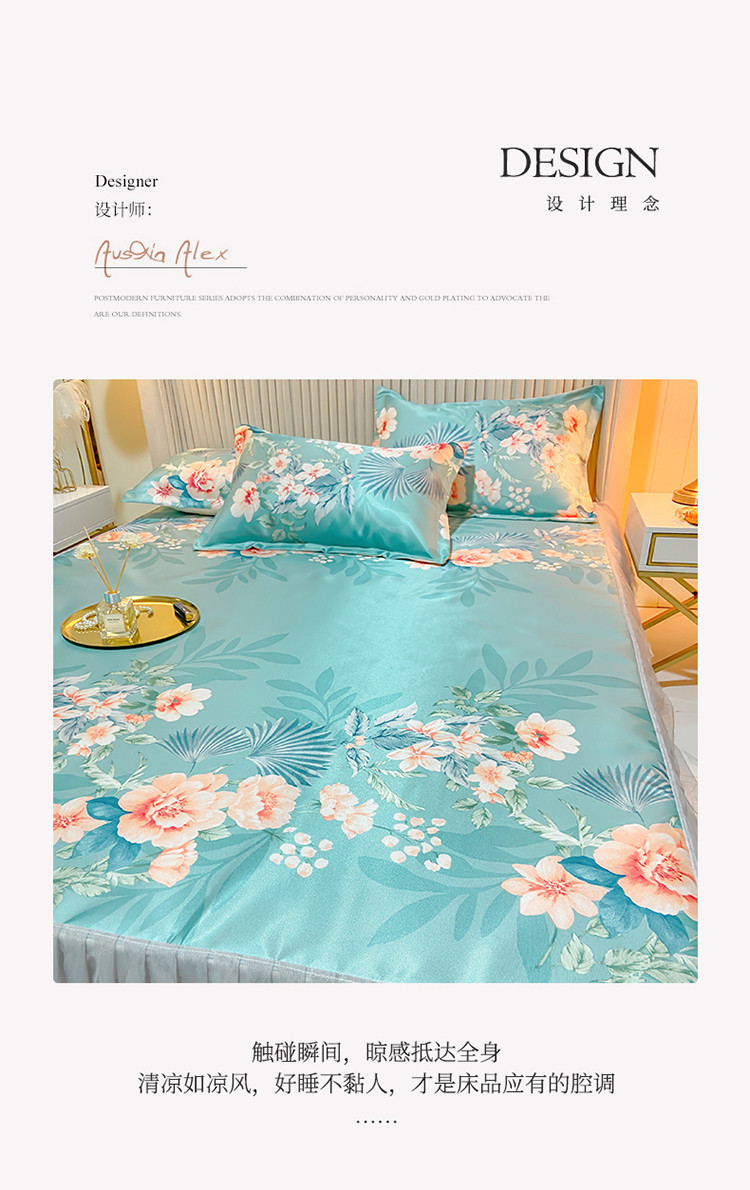 ds生活馆 凉席冰丝席可水洗冰丝席床裙款冰丝席三件套 盛世花开